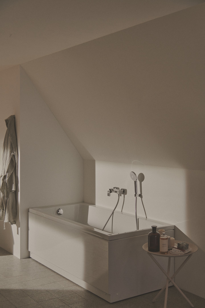 DN 15, Griff aus Metall mit Rot-/Blau-Markierung, S-Anschlüsse (verstellbar), Kartusche Ø 38 mm, CLICK-Kartusche mit keramischen Dichtscheiben, Kartuschenschwenkbereich 100°, Kartuschenübersetzung aus Edelstahl, Heißwassertemperaturbegrenzer, mit 2 Rosetten (eckig), Anschlussmaß Brauseschlauch 1/2 Zoll, Geräuschverhalten DIN 4109: Gruppe 1, Lebensdauer DIN EN 817