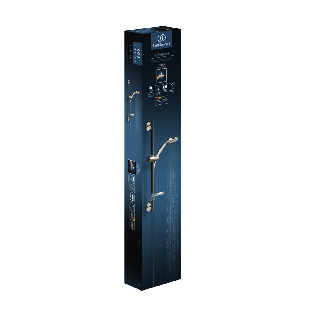 Idealrain M1 Brausekombination 900/720/600 mm, Aerosolarm, Anti-Kalk-Funktion, Brausestange 900/720/600 mm mit schwenkbarem Druckknopf-Schieber, transparente Seifenschale, Brauseschlauch Idealflex 1750 mm