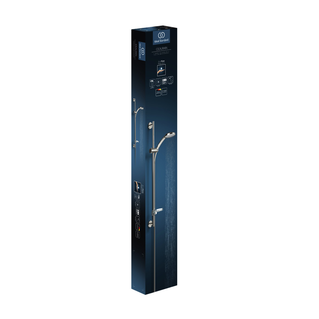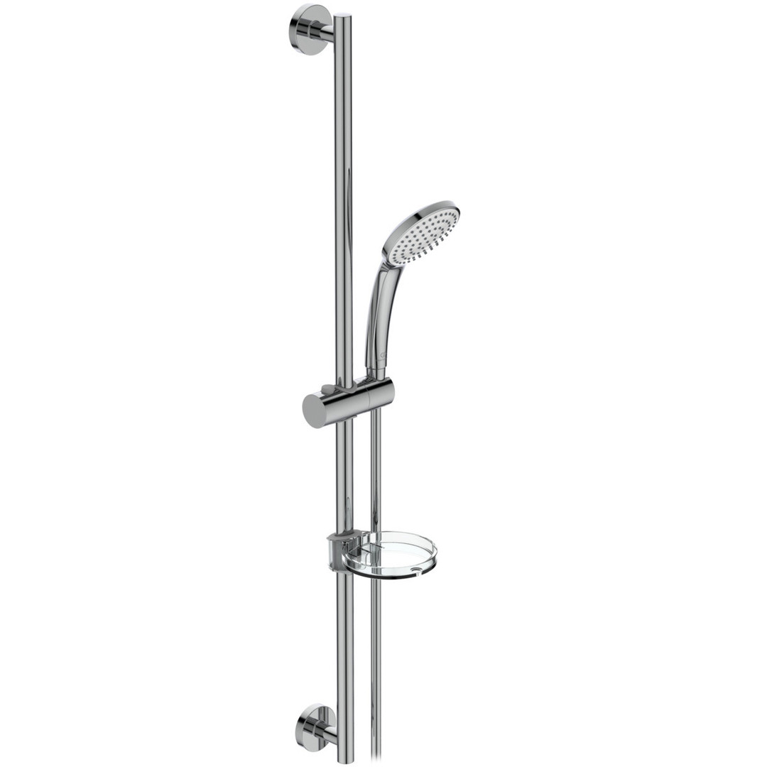 Idealrain M1 Brausekombination 900/720/600 mm, Aerosolarm, Anti-Kalk-Funktion, Brausestange 900/720/600 mm mit schwenkbarem Druckknopf-Schieber, transparente Seifenschale, Brauseschlauch Idealflex 1750 mm
