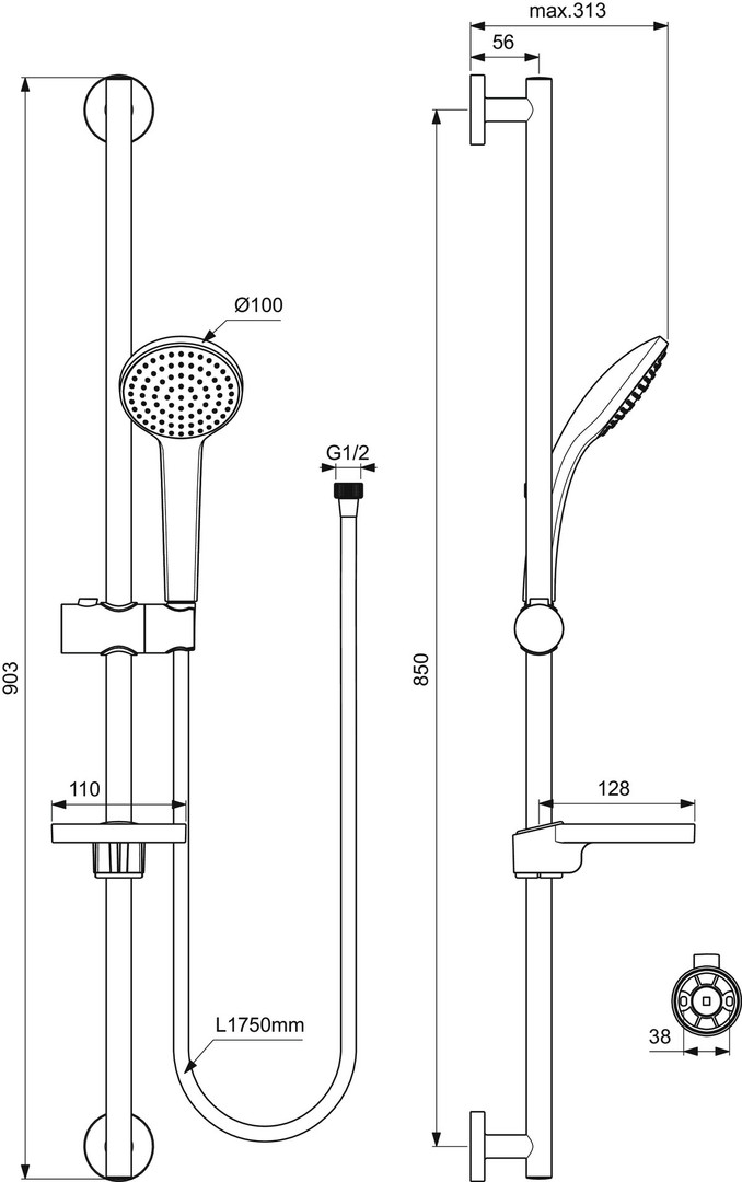 Ideal-Standard Brausekombination Idealrain 90 cm M1, mit 1-Funktionshandbrause d= 10cm, verchromt ISB9414AA