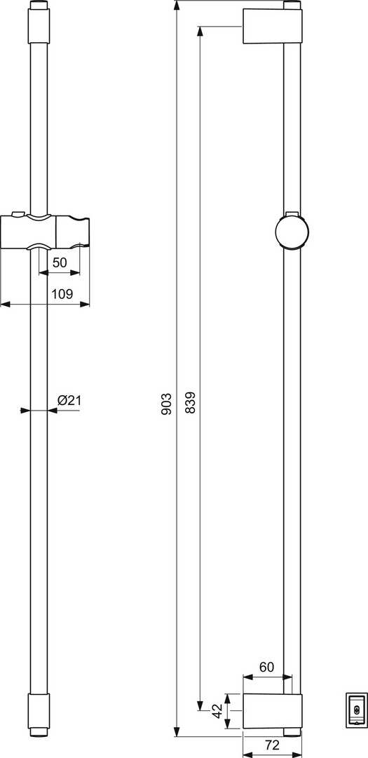 Idealrain XL & L Brausestange 900/600 mm mit schwenkbarem Druckknopf-Schieber, Brausestange und Befestigung aus Metall