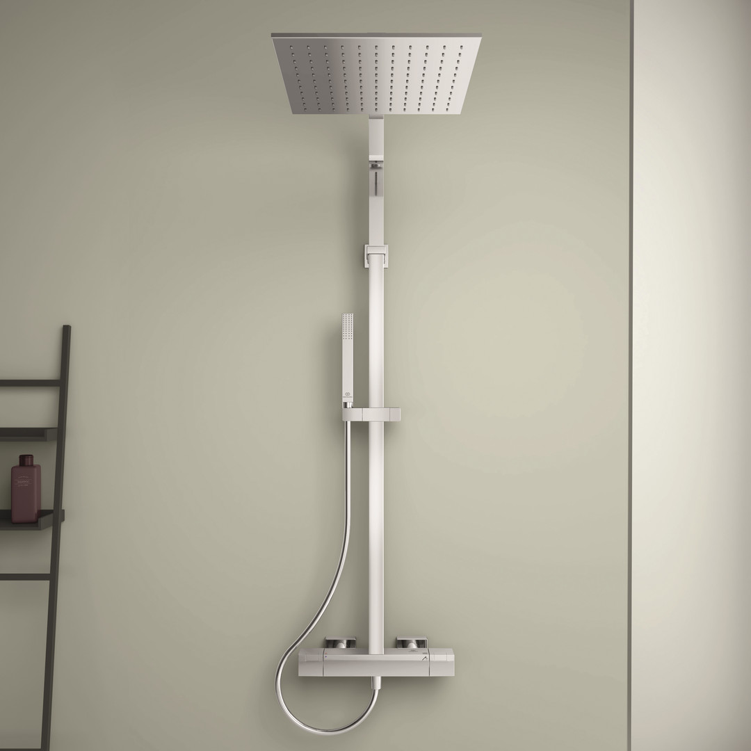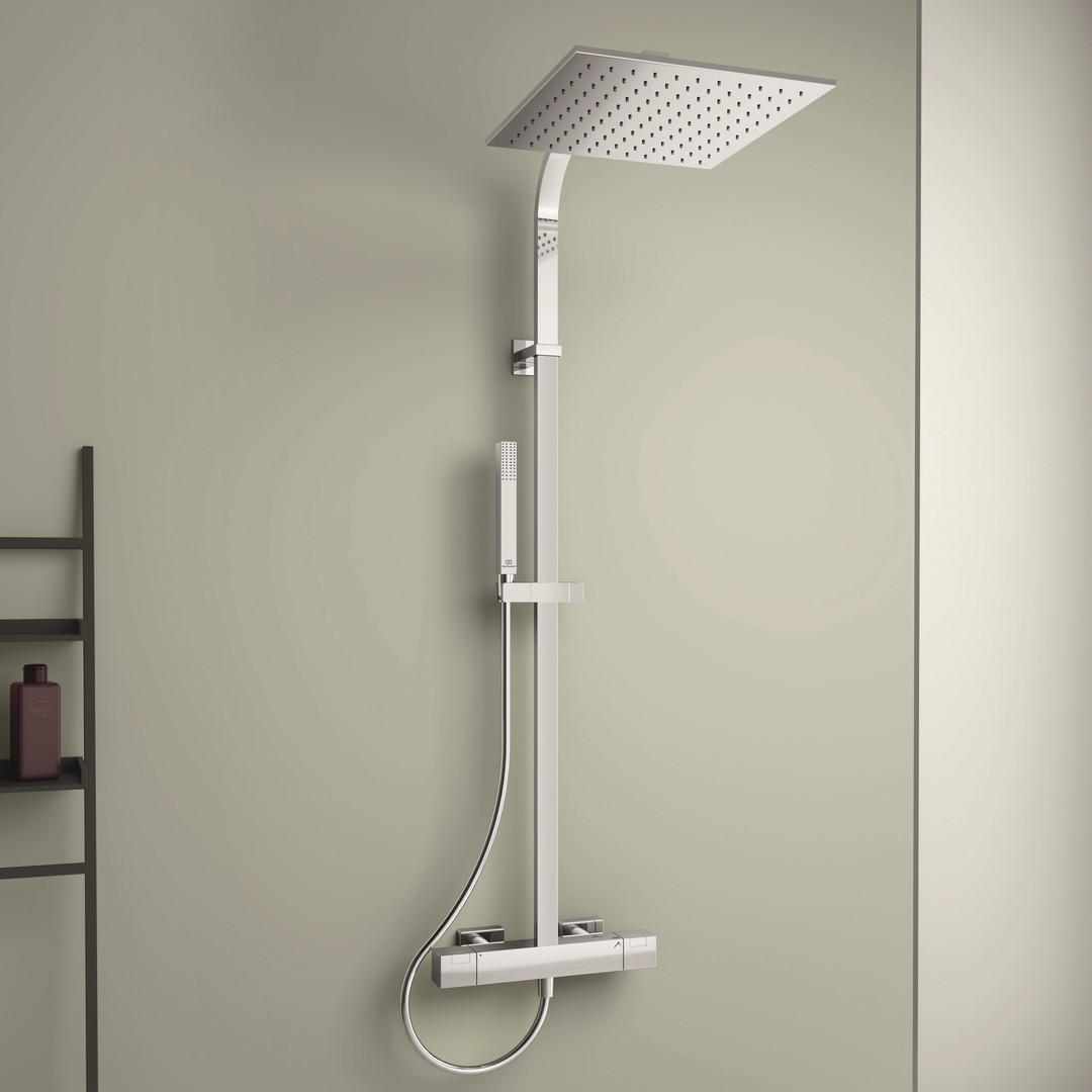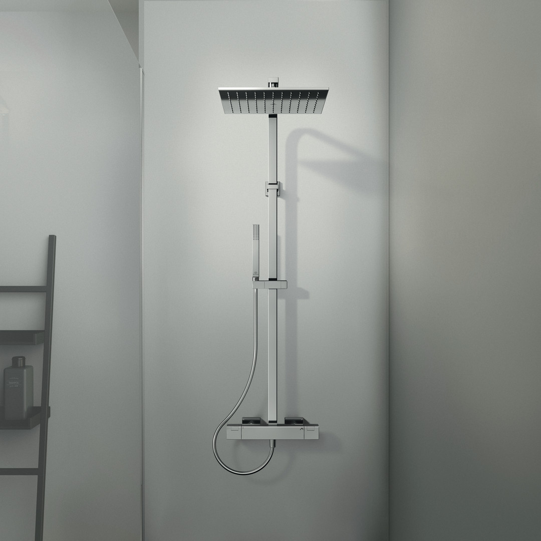 Ideal-Standard Duschsystem C100 Ceratherm mit Brausethermostat, Kopfbrause eckig, verchromt