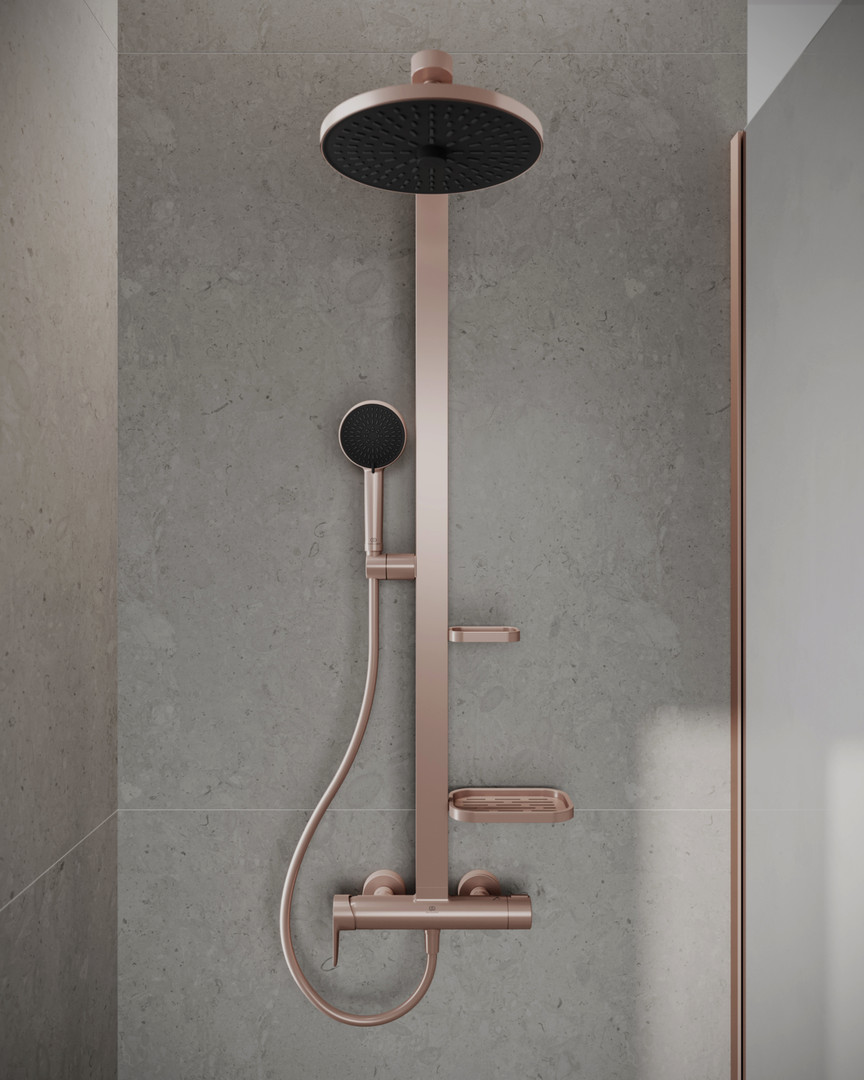Ideal-Standard Duschsystem Ceraflow Alu+ mit Einhebel-Brausearmatur, 2 Ablagen, Kopfbrause rund, rosé ISBD584RO