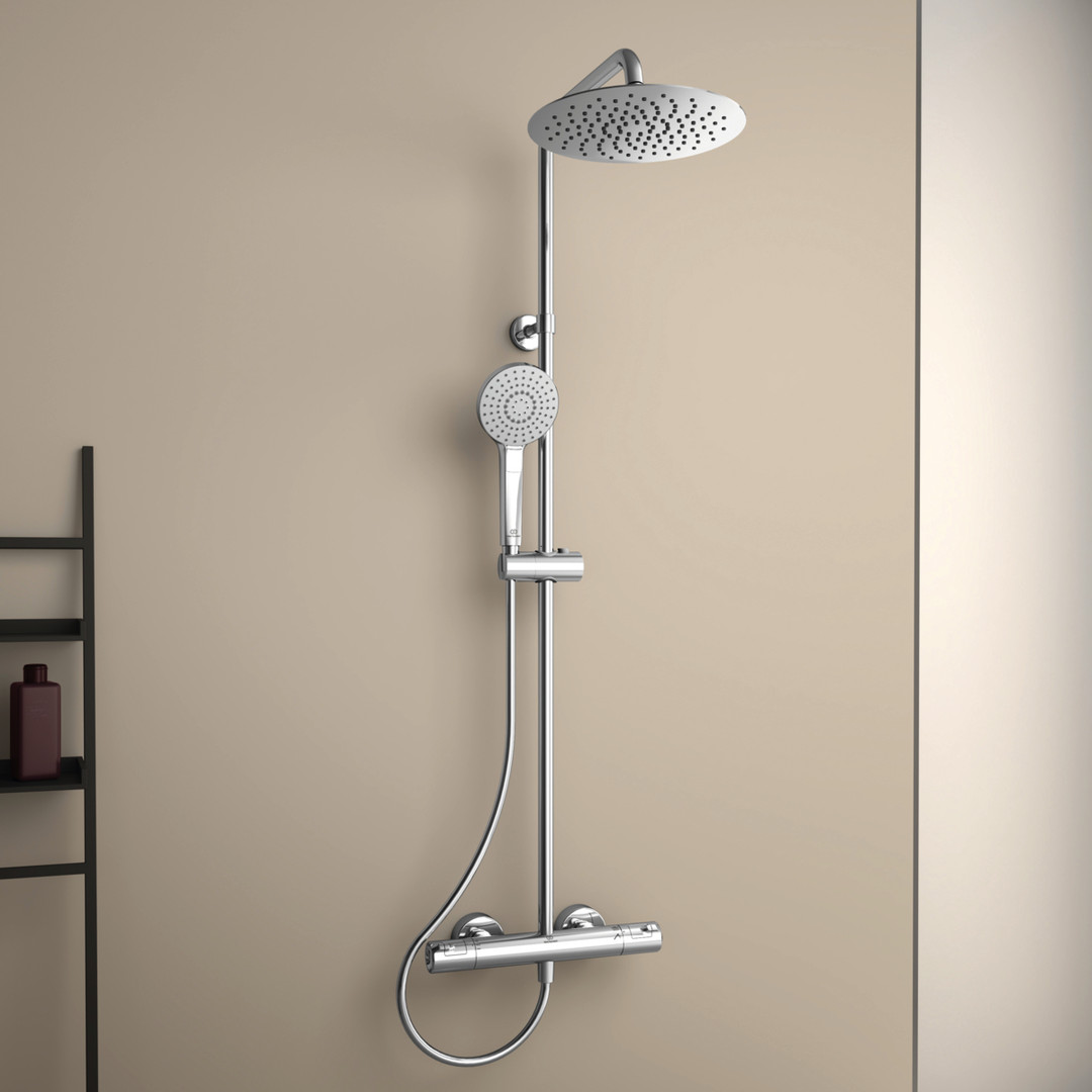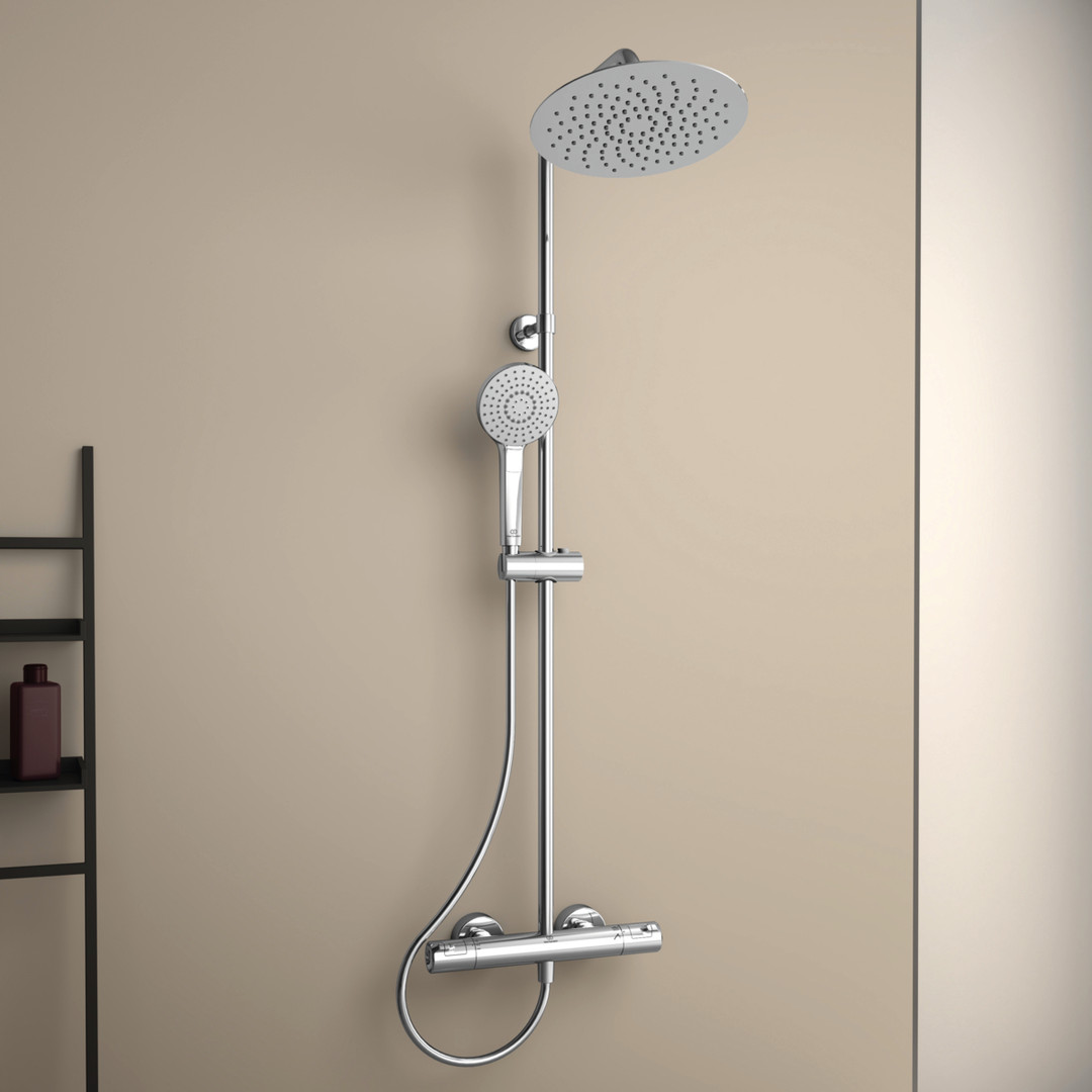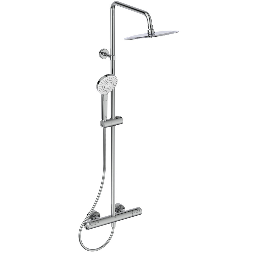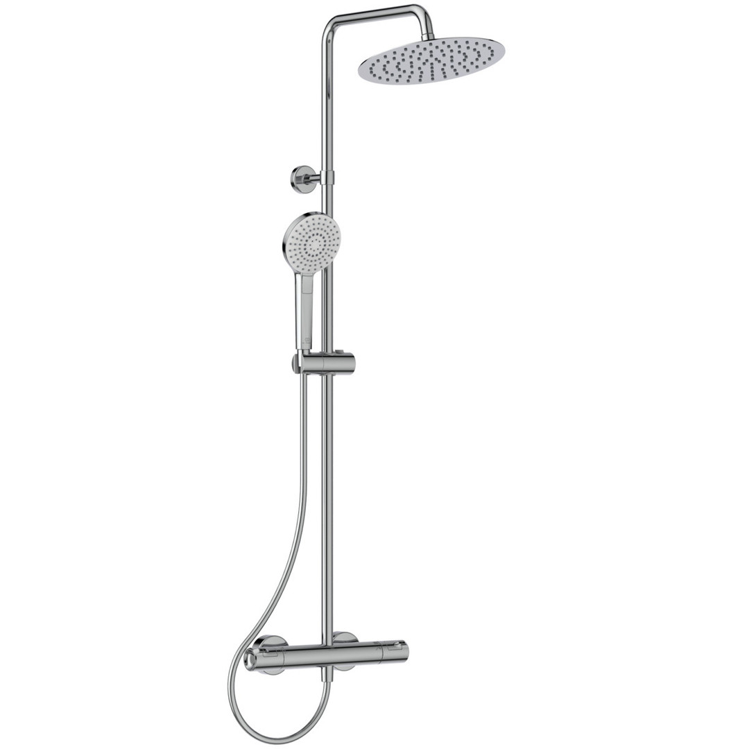 Ideal-Standard Duschsystem Ceratherm T 50 Handbrause 110 mm, mit Brausethermostat, Kopfbrause rund, verchromt