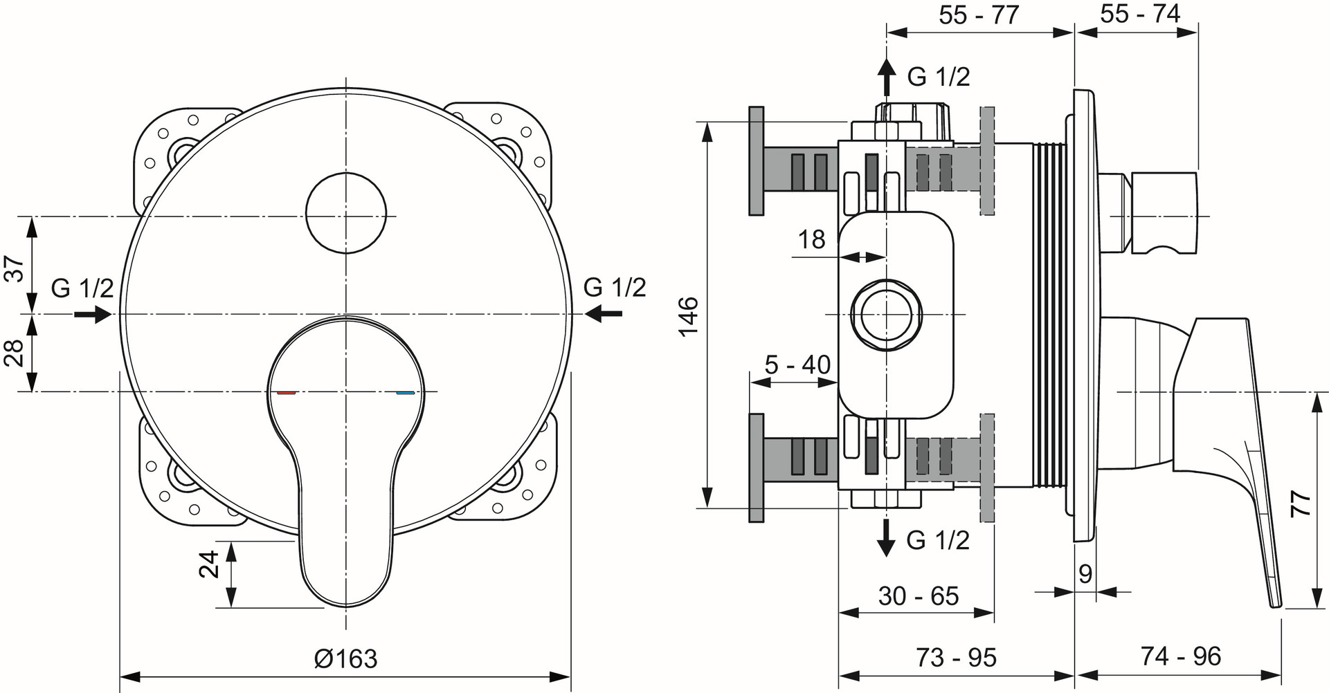 Ideal-Standard Fertigmontageset Cerabase d= 163mm, für Badearmatur UP, chrom