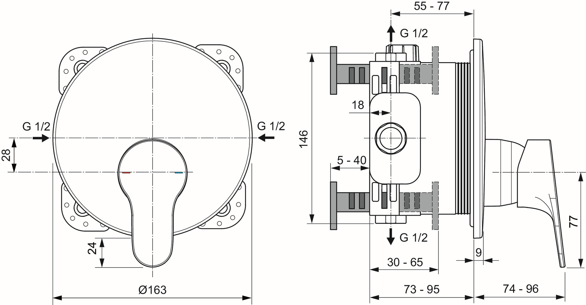 Ideal-Standard Fertigmontageset Cerabase d= 163mm, für Brausearmatur UP, chrom