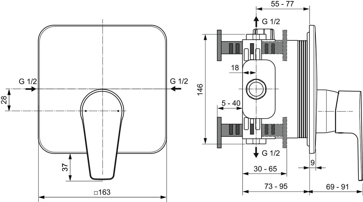 für Wandeinbau, Bausatz 2 für Fertigmontage, Griff aus Metall mit Rot-/Blau-Markierung, Unterputz-Bausatz 1 zur Montage benötigt (A1000NU - separat erhältlich), Kartusche Ø 47 mm, CLICK-Kartusche mit keramischen Dichtscheiben, Kartuschenschwenkbereich 120°, Kartuschenübersetzung aus Edelstahl, Heißwassertemperaturbegrenzer, mit 1 Rosette (eckig) aus Kunststoff, DICHT-FIX System separate Abdichtung jeder Öffnung für optimalen Schutz des Bauwerks gegen Feuchtigkeit und Wasser, Geräuschverhalten DIN 4109 Gruppe 1, Lebensdauer: DIN EN 817, DIN EN 200