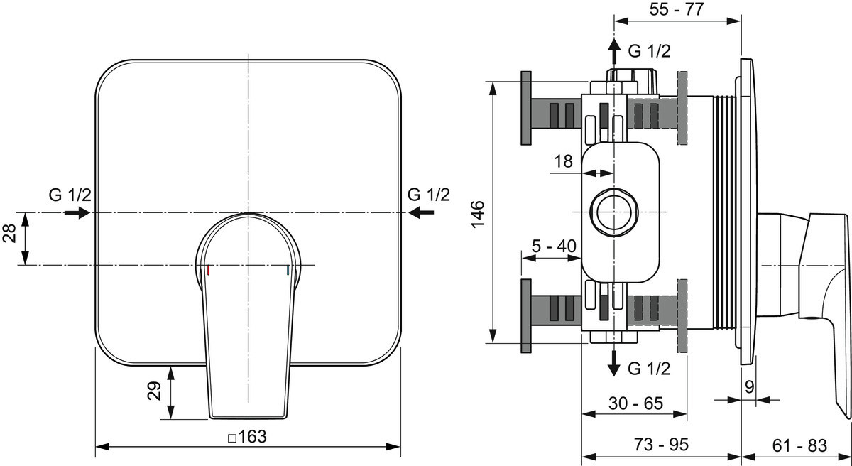 für Wandeinbau, Bausatz 2 für Fertigmontage, Griff aus Metall mit Rot-/Blau-Markierung, Unterputz-Bausatz 1 Easy-Box zur Montage benötigt (A1000NU - separat erhältlich), Kartusche Ø 47 mm, CLICK-Kartusche mit keramischen Dichtscheiben, Kartuschenübersetzung aus Edelstahl, Heißwassertemperaturbegrenzer, mit 1 Rosette (eckig) aus Metall, DICHT-FIX System separate Abdichtung jeder Öffnung für optimalen, Schutz des Bauwerks gegen Feuchtigkeit und Wasser, Geräuschverhalten DIN 4109 Gruppe 1, Lebensdauer DIN EN 817