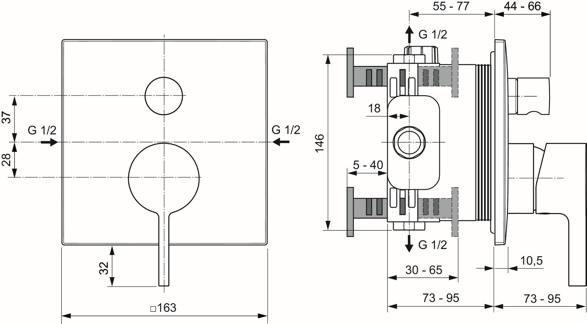 Bausatz 2 für Fertigmontage, Griff aus Metall, Unterputz-Bausatz 1 zur Montage benötigt (A1000NU - separat erhältlich), Kartusche Ø 47 mm, CLICK-Kartusche, Heißwassertemperaturbegrenzer, mit 1 Rosette (eckig) aus Metall, DICHT-FIX System separate Abdichtung jeder Öffnung für optimalen Schutz des Bauwerks gegen Feuchtigkeit und Wasser, mit Zugumsteller Wanne/Brause, Geräuschverhalten DIN 4109 Gruppe 1, Lebensdauer DIN EN 817