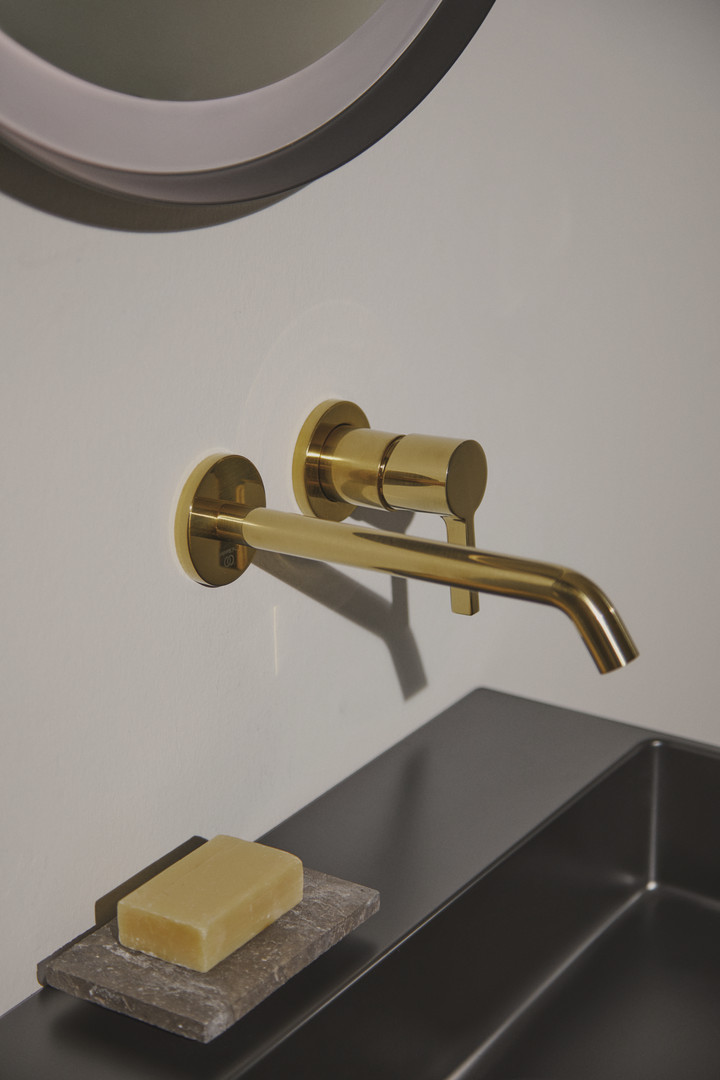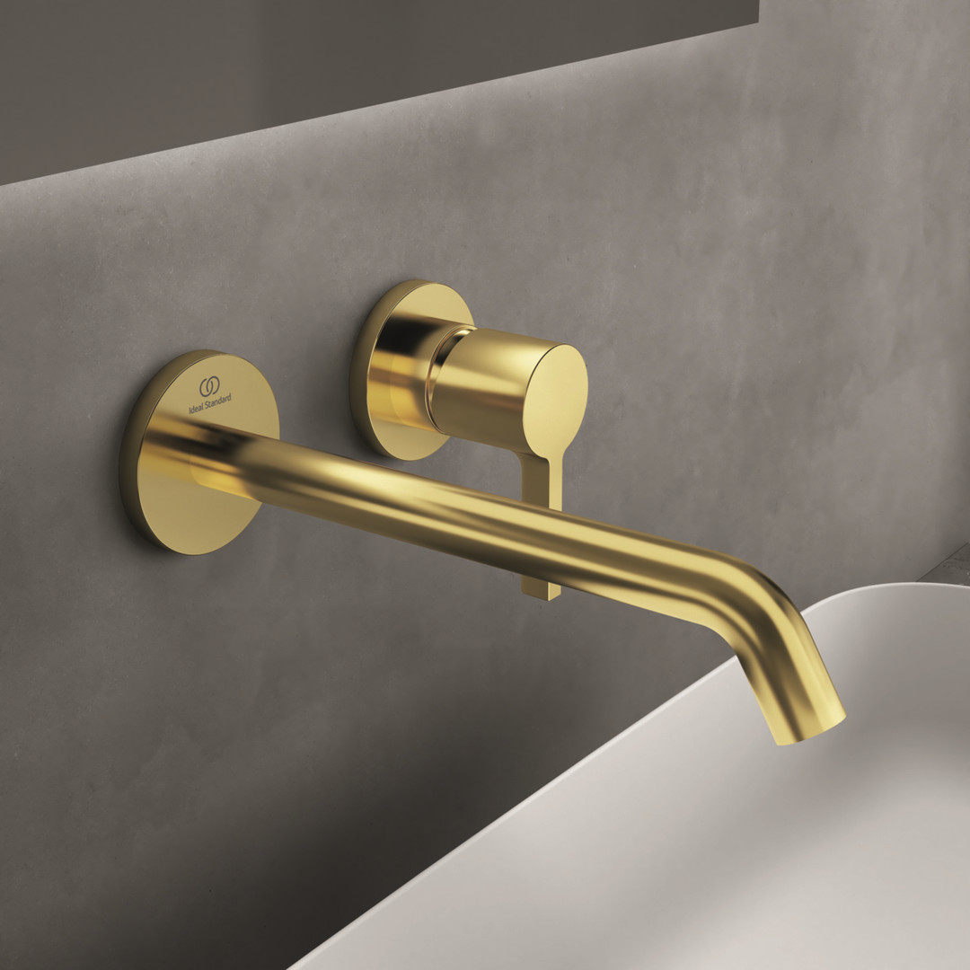 Ideal-Standard Fertigmontageset Joy für Wand-Waschtisch-Einhebelmischer, Auslauf 220 mm, Brushed Gold