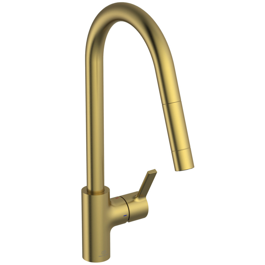 Ideal-Standard Küchenarmatur Gusto brushed gold, mit hohem Rohrauslauf und herausziehbarer Handbrause ISBD414A2