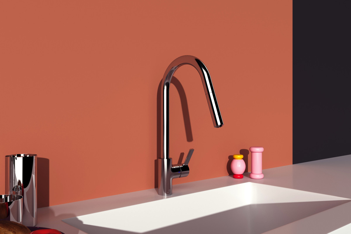Ideal-Standard Küchenarmatur Gusto chrom, mit hohem Rohrauslauf und herausziehbarer Handbrause, Niederdruck