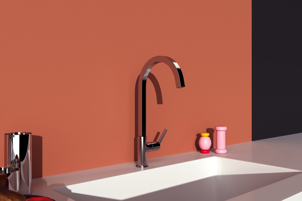 Ideal-Standard Küchenarmatur Gusto chrom, mit hohem eckigen Rohrauslauf, Niederdruck
