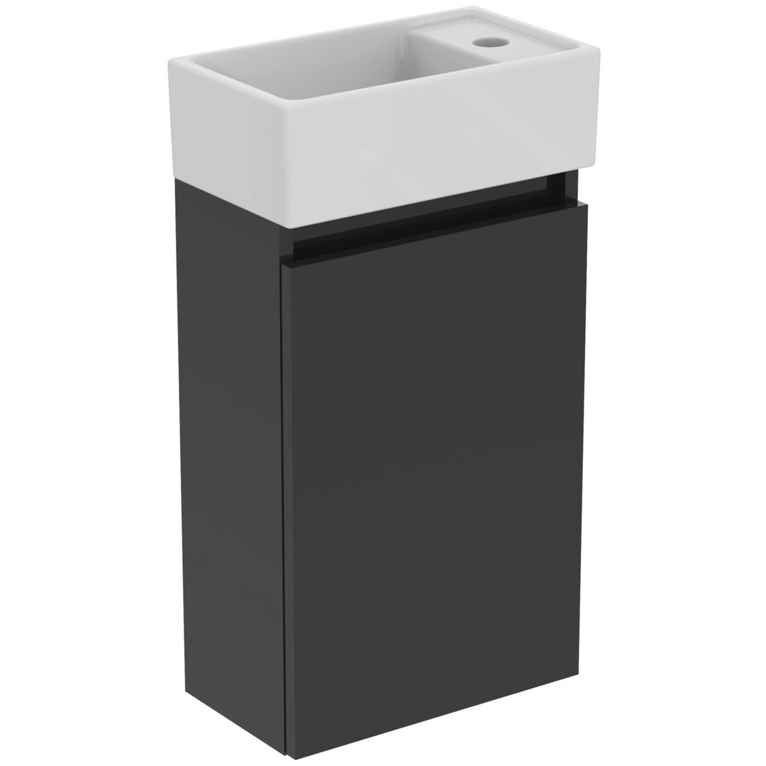 Ideal-Standard Möbel-Handwaschbecken-Paket Eurovit Plus 37x21x67cm, Hahnloch rechts, Grau glänzend lackiert