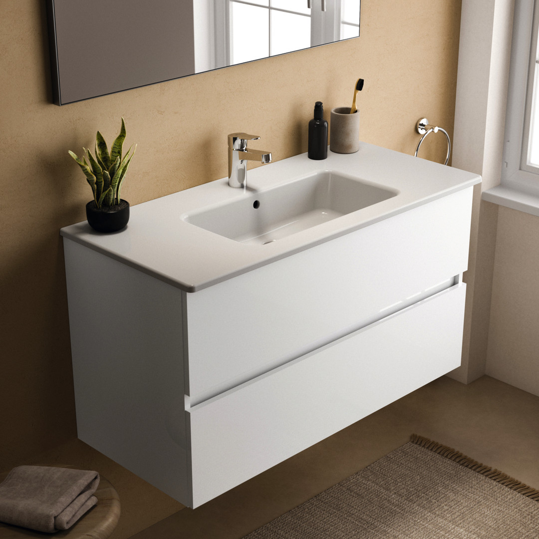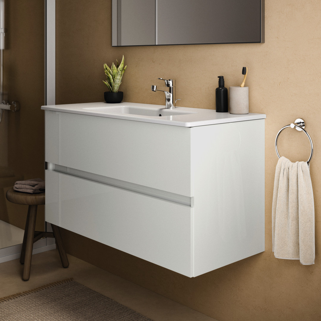 Ideal-Standard Möbeldoppelwaschtischunterschrank Eurovit Plus 100 x 44 x 55 cm, Hochglanz weiß lackiert, 2 Auszüge