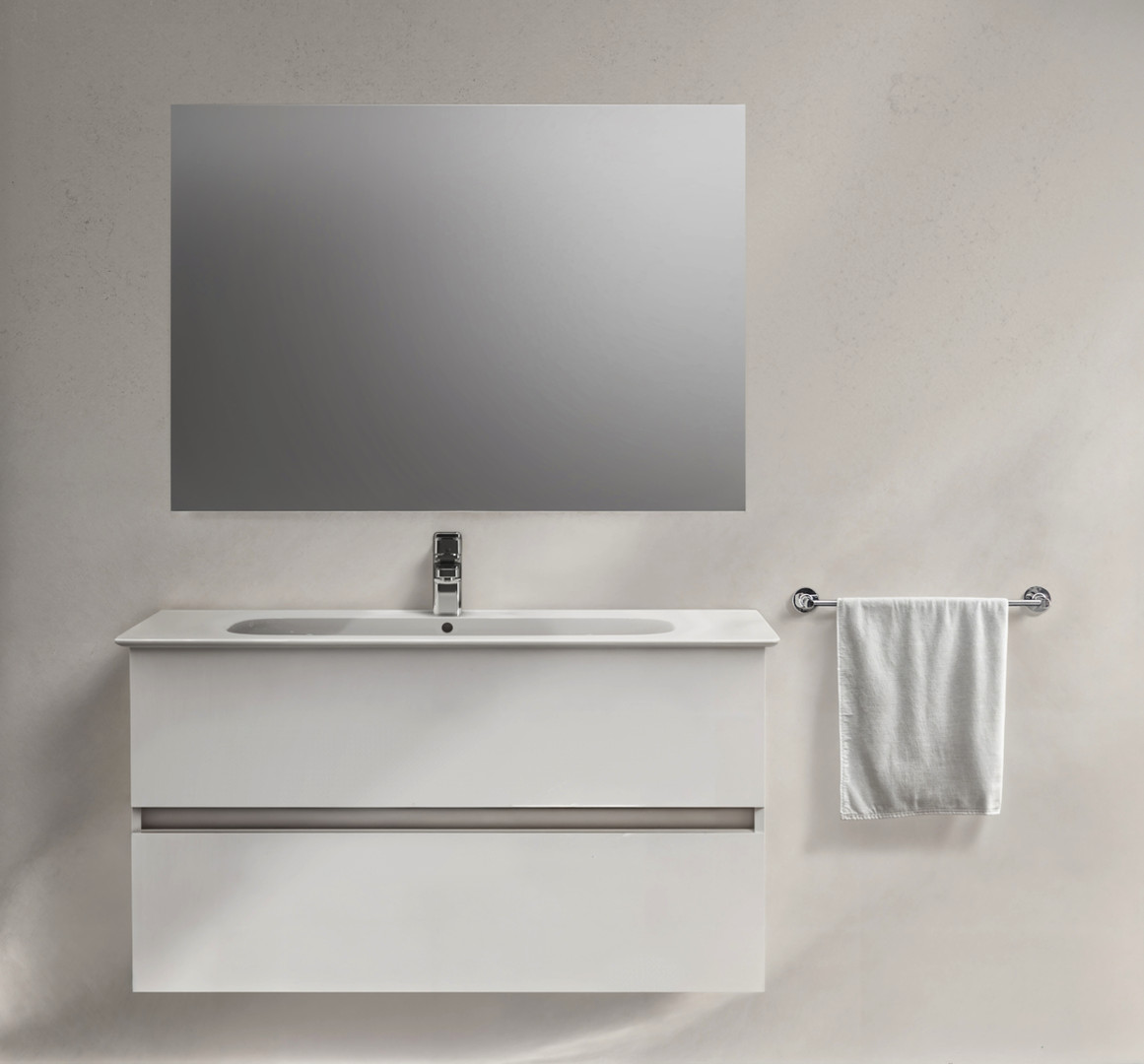 Mechanismus Auszug Softclose, Griffmulde, Korpus Melamin-beschichtete Spanplatte, Front MDF, geeignet für Waschtischtyp Möbelwaschtisch, mit Befestigung