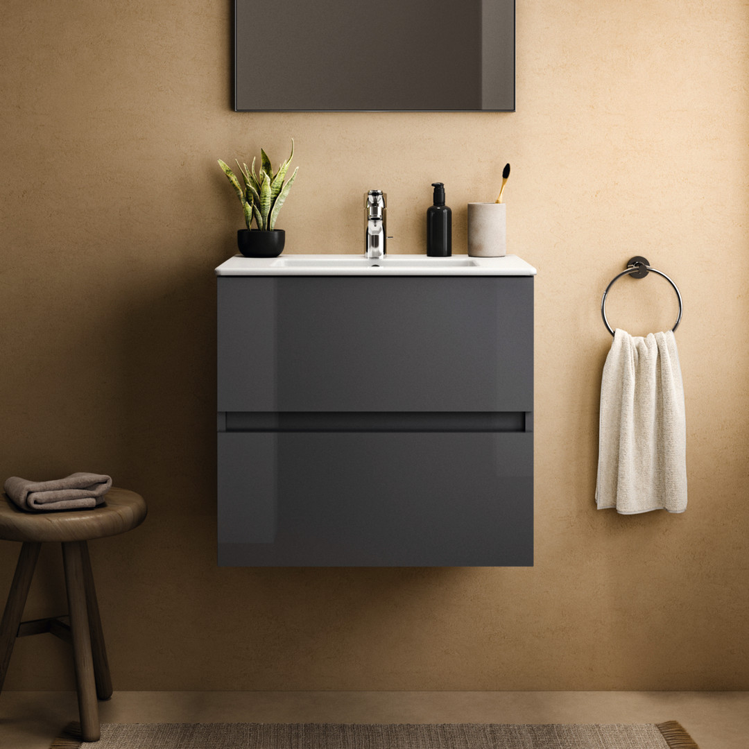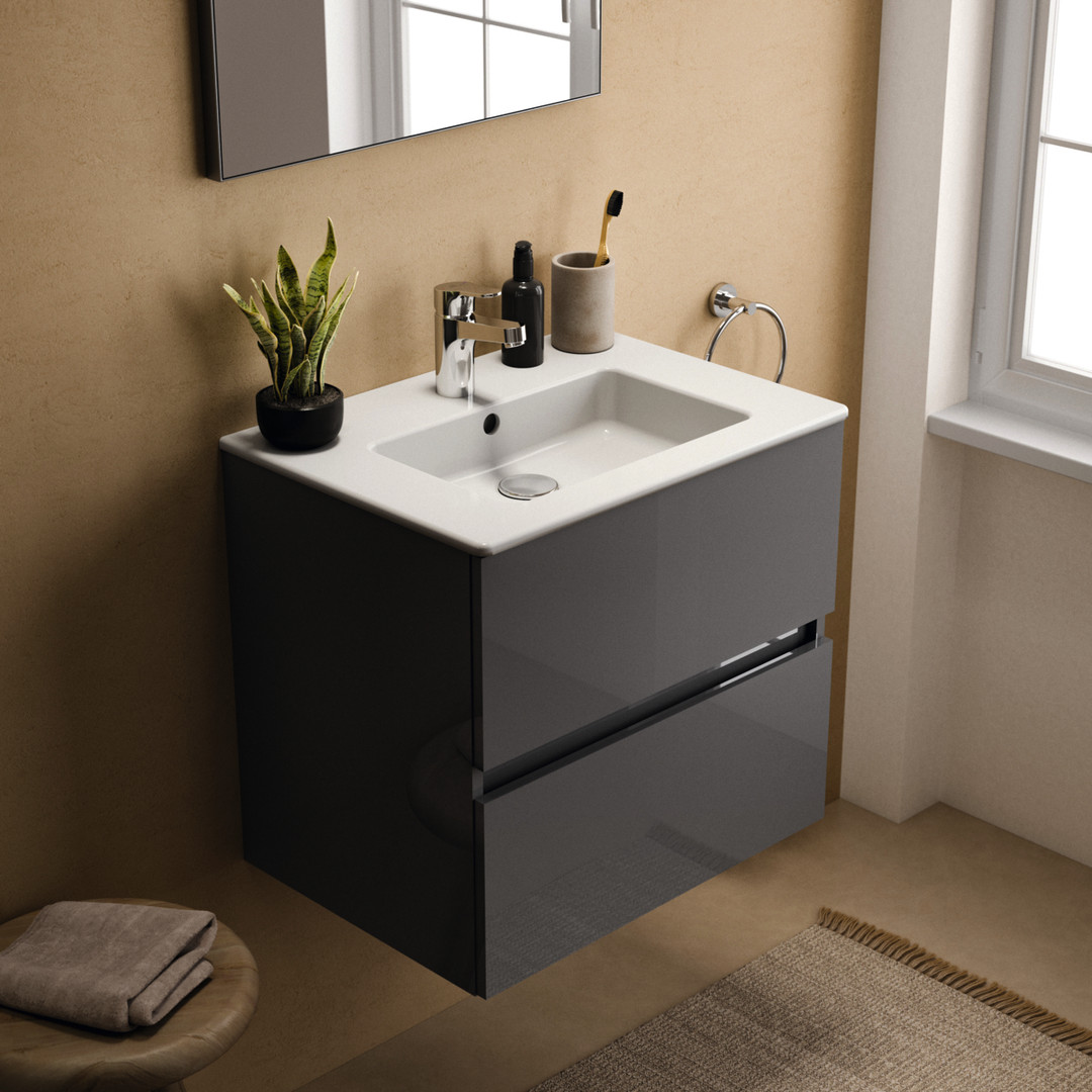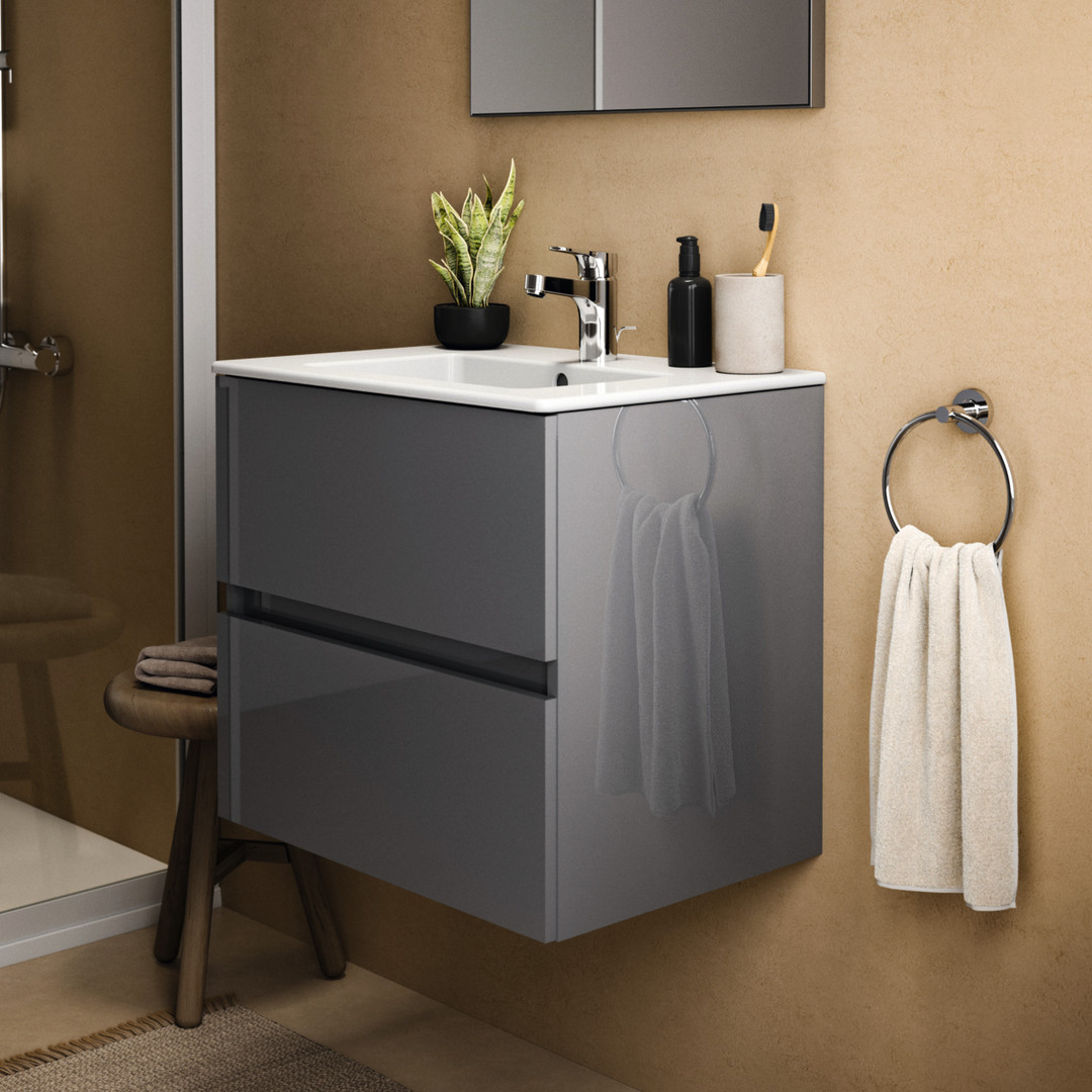Ideal-Standard Möbeldoppelwaschtischunterschrank Eurovit Plus 60 x 44 x 55 cm, Grau glänzend lackiert, 2 Auszüge
