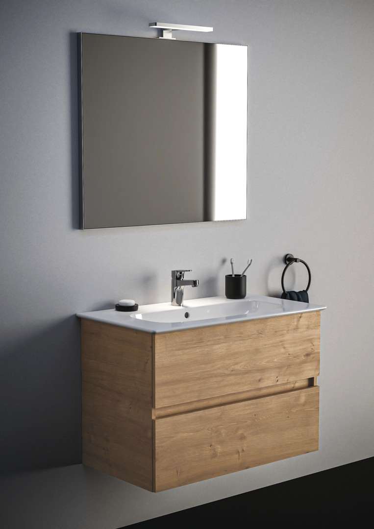 Mechanismus Auszug Softclose, Griffmulde, Korpus Melamin-beschichtete Spanplatte, Front MDF, geeignet für Waschtischtyp Möbelwaschtisch, mit Befestigung