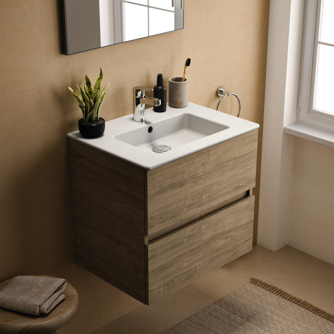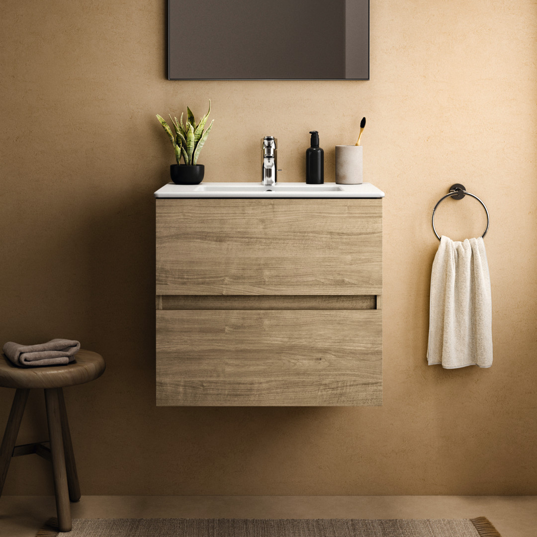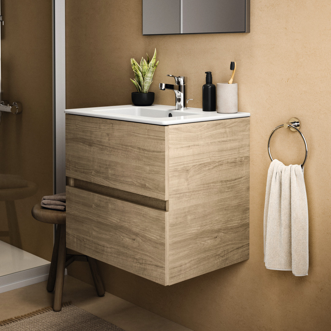 Ideal-Standard Möbeldoppelwaschtischunterschrank Eurovit Plus 60 x 44 x 55 cm, Hamilton Eiche, 2 Auszüge