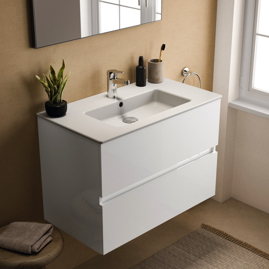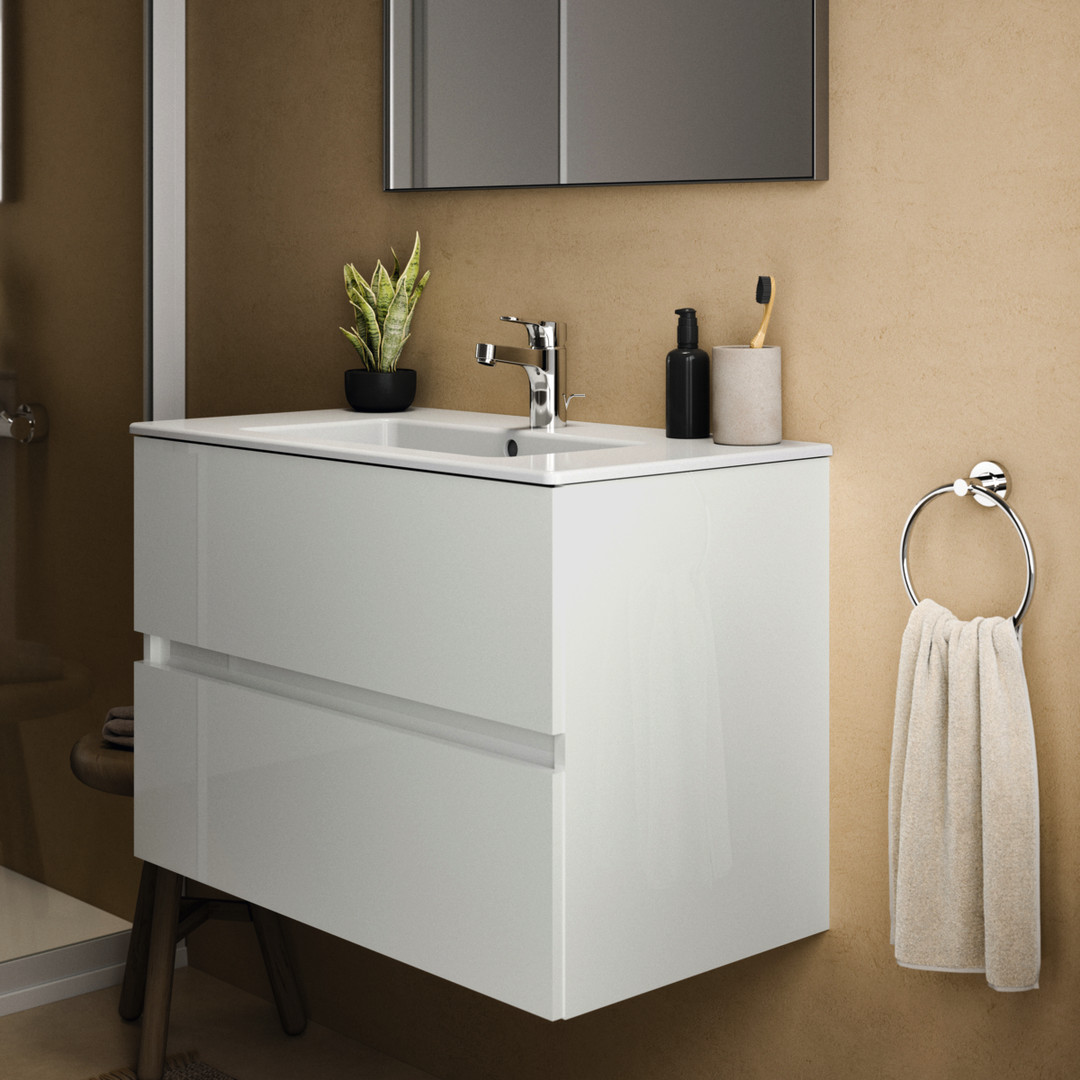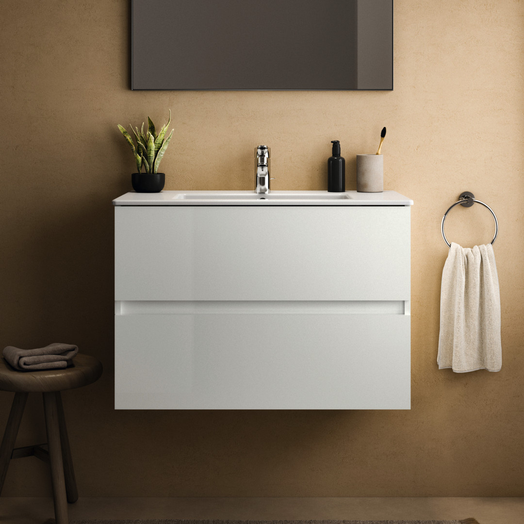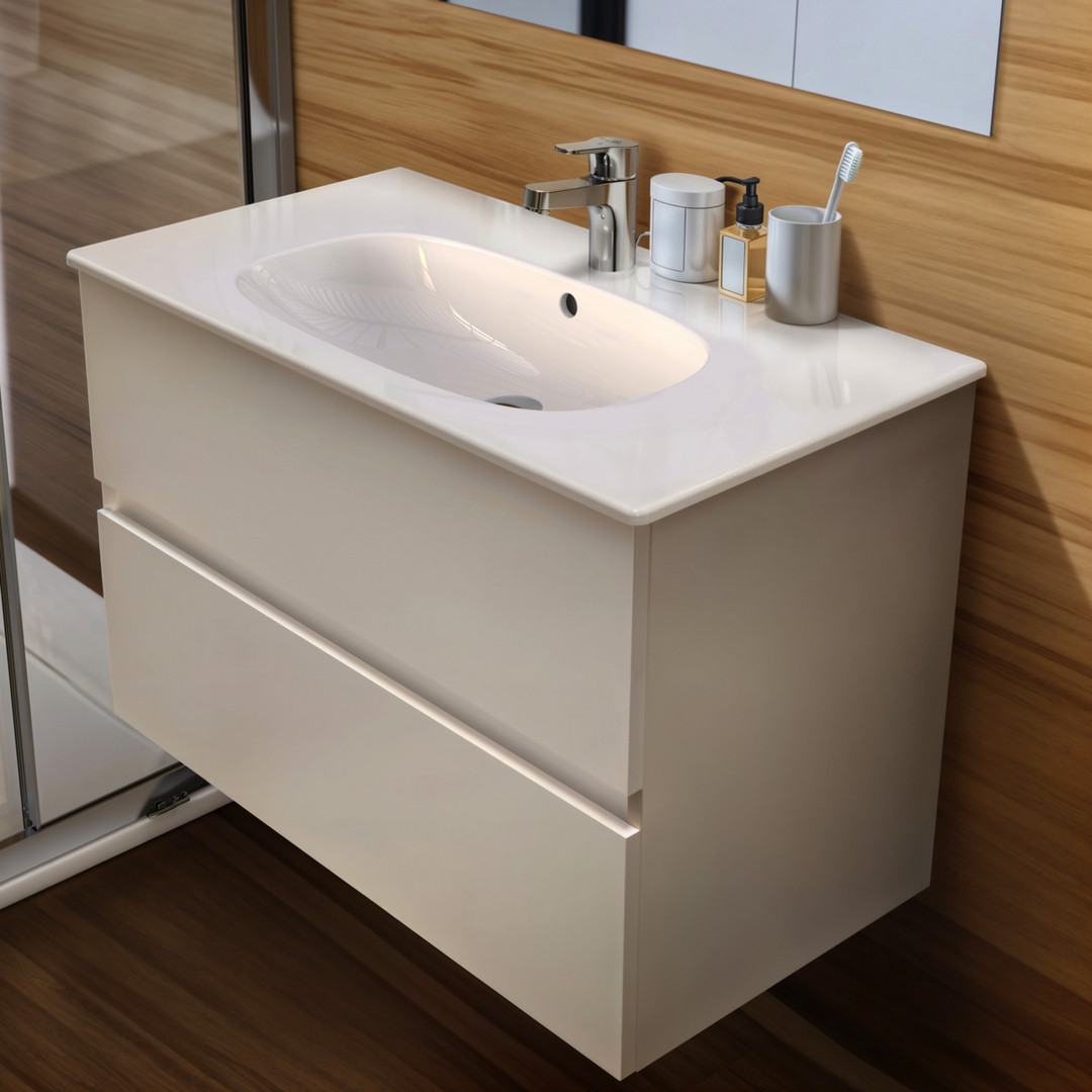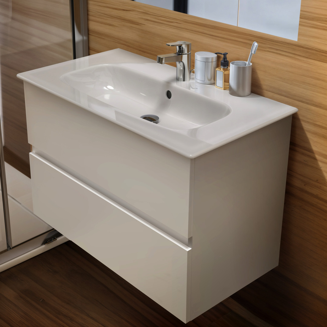 Ideal-Standard Möbeldoppelwaschtischunterschrank Eurovit Plus 80 x 44 x 55 cm, Hochglanz weiß lackiert, 2 Auszüge