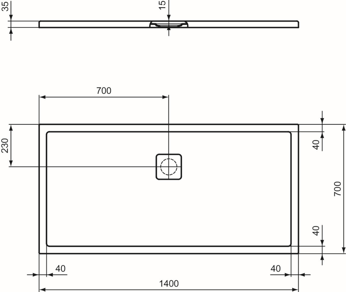 Ideal-Standard Rechteck-Brausewanne Ultra Flat Evo 140 x 70 x 3,5 cm, grau matt, Ablauf an langer Seite