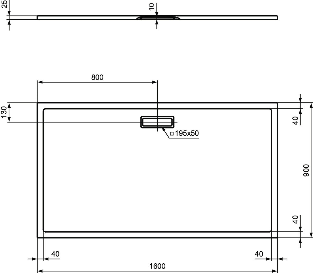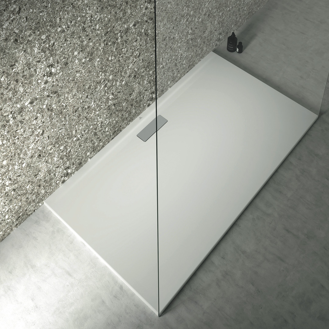 Ideal-Standard Rechteck-Brausewanne Ultra Flat New Ablaufgarnitur mit Abdeckung, 160 x 90 x 2,5 cm, Seidenweiß