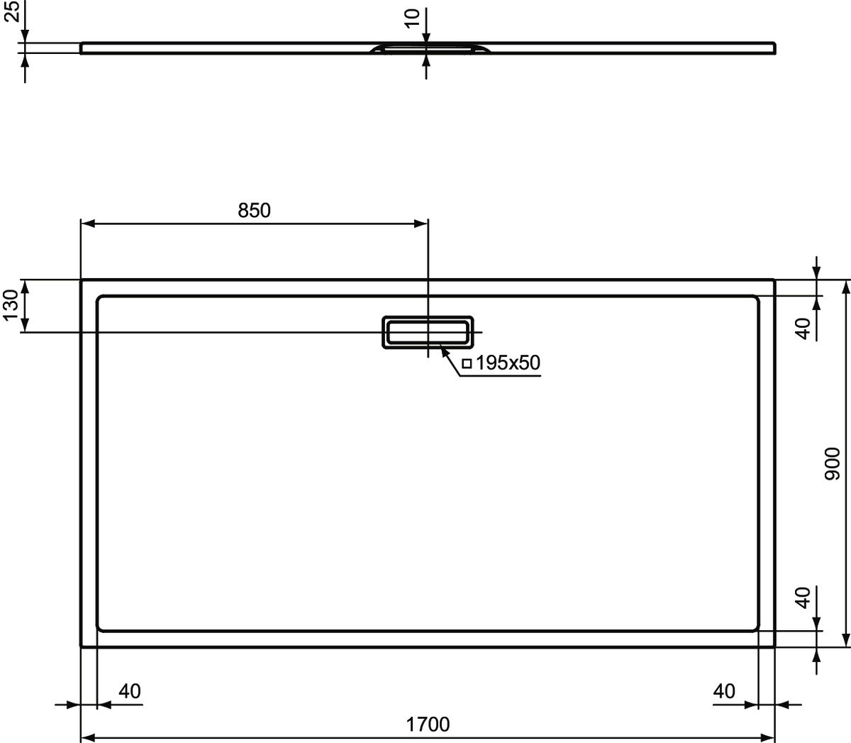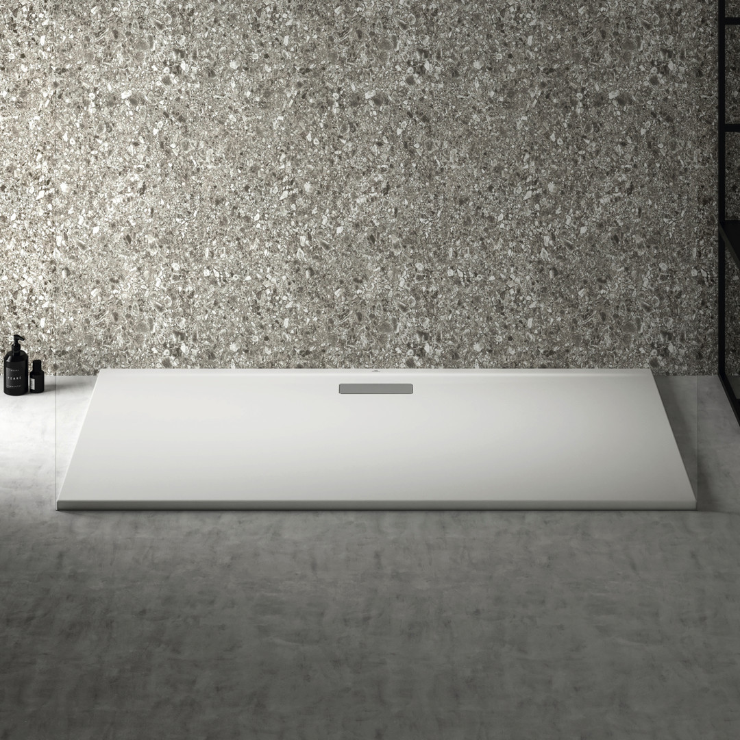 Ideal-Standard Rechteck-Brausewanne Ultra Flat New Ablaufgarnitur mit Abdeckung, 170 x 90 x 2,5 cm, Seidenweiß