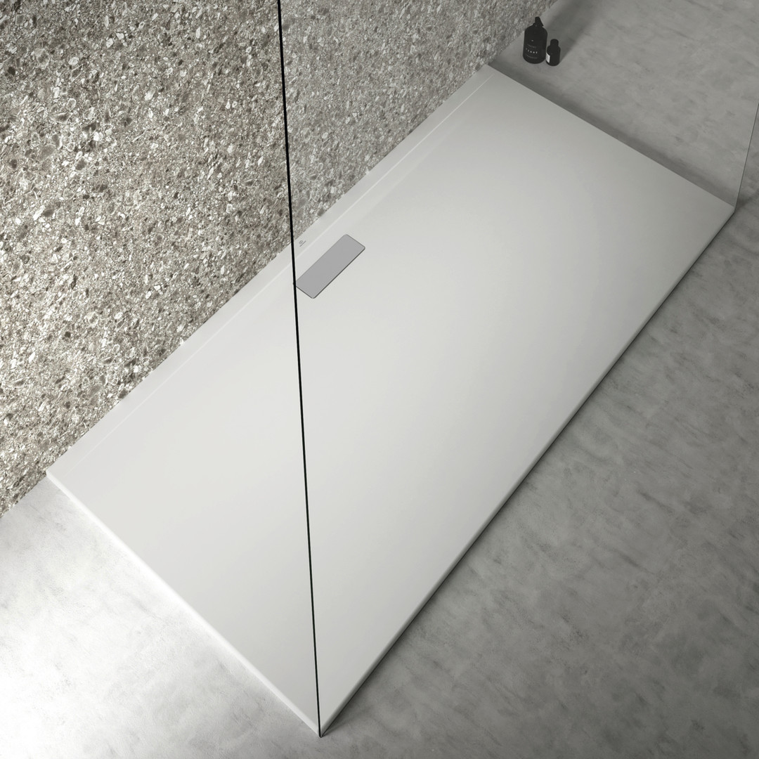 Ideal-Standard Rechteck-Brausewanne Ultra Flat New Ablaufgarnitur mit Abdeckung, 180 x 90 x 2,5 cm, weiß (Alpin)