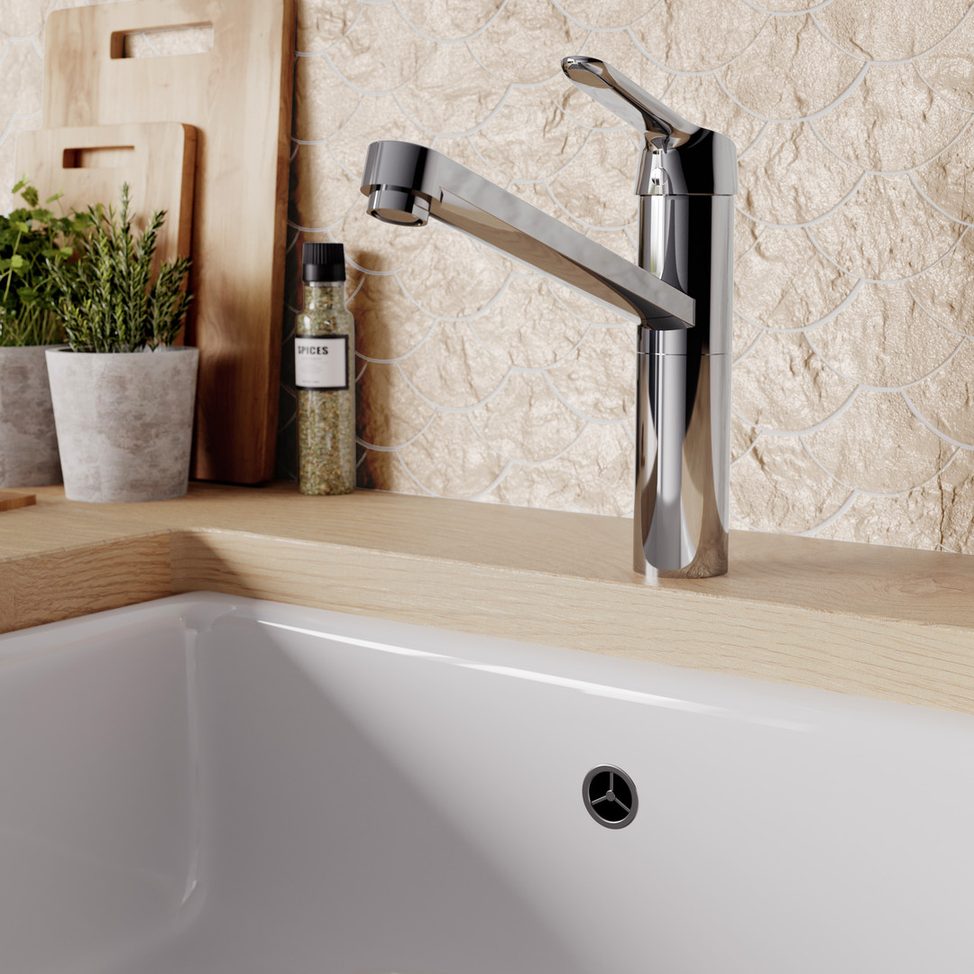 Ideal-Standard Spültisch-Einhebelmischer CeraFlex Niederdruck, Ausladung 222mm, hoher Auslauf, chrom ISBC136AA