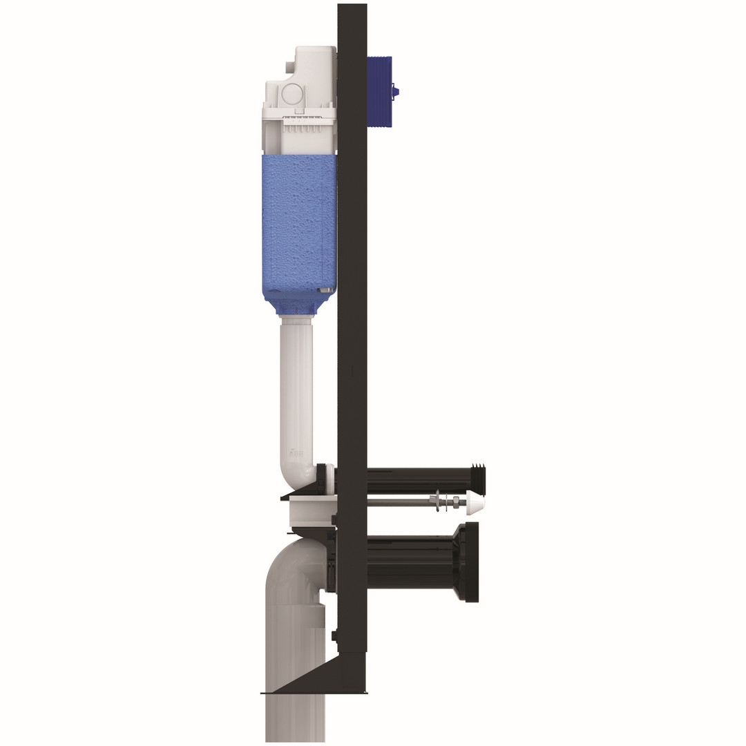 mit Unterputz-Spülkasten, einbaufertig vormontiertes WC-Element für Ständer- oder Vorwandmontage (Trockenbau), selbsttragender Profil-Stahlrahmen mit höhenverstellbaren Füßen, Oberfläche korrosionsgeschützt durch Kunststoff-Pulverbeschichtung, Rahmen bis 400 kg belastbar, mit vormontiertem Unterputz-Spülkasten, schwitzwassergedämmt, wassersparend durch Zweimengen-Spülung, umstellbar auf 4/2, 6/3 oder 7/3 l Spülmenge, wassersparend optimierter Füllvorgang durch SmartValve-Technik, Instandhaltungs- und Montagearbeiten am Spülkasten werkzeuglos, für wandhängende WC mit 180 oder 230 mm Befestigungsmaß, zur Kombination mit mechanischen pneumatischen oder elektronischen Betätigungsplatten, kombinierbar mit Hygienesysteme SmartFlush, Ausführung R009567 Hilfsrahmen in drei Schritten höhenverstellbar (je 50 mm) barrierefrei einsetzbar, Ausführung R015467 freistehende Montage