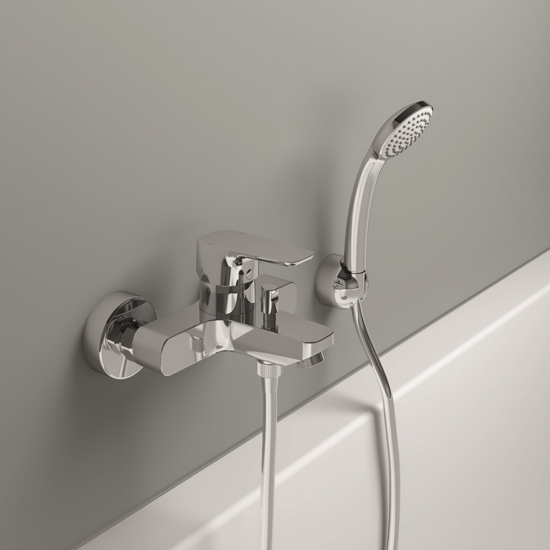 Ideal-Standard Wannen-Einhebelmischer CeraPlan III AP, mit Brausegarnitur, verchromt