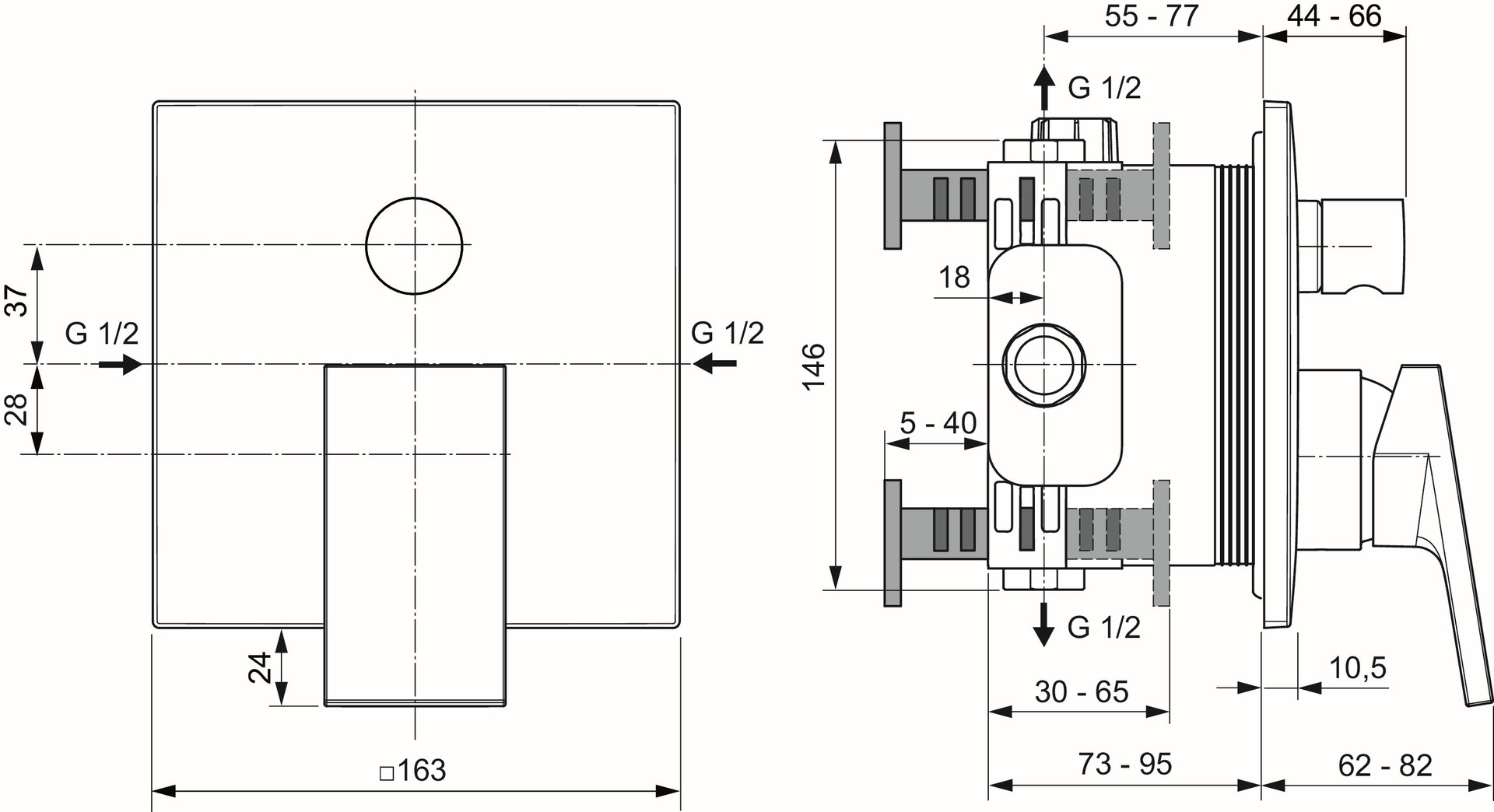 für Fertigmontage, Griff aus Metall, Unterputz-Bausatz 1 zur Montage benötigt (A1000NU - separat erhältlich), Kartusche Ø 47 mm, CLICK-Kartusche mit keramischen Dichtscheiben, Kartuschenschwenkbereich 120°, Kartuschenübersetzung aus Edelstahl, Heißwassertemperaturbegrenzer, mit 1 Rosette (eckig) aus Metall, DICHT-FIX System separate Abdichtung jeder Öffnung für optimalen Schutz des Bauwerks gegen Feuchtigkeit und Wasser, mit Zugumsteller Wanne/Brause, Geräuschverhalten DIN 4109 Gruppe 1, Lebensdauer DIN EN 817