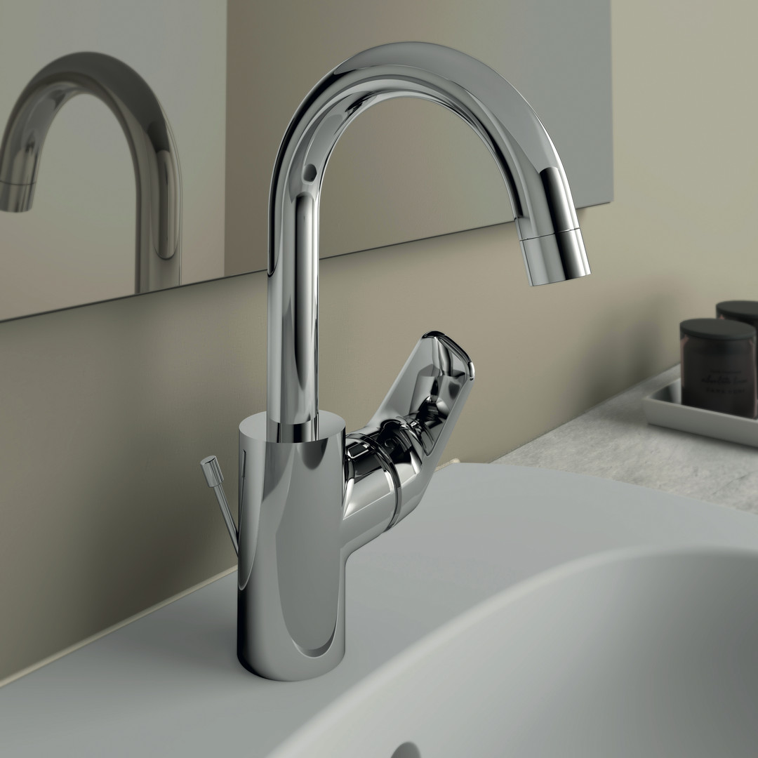 Ideal-Standard Waschtisch-Einhebelmischer CeraFlex mit hohem/schwenkbarem Auslauf, mit Ablaufgarnitur, chrom