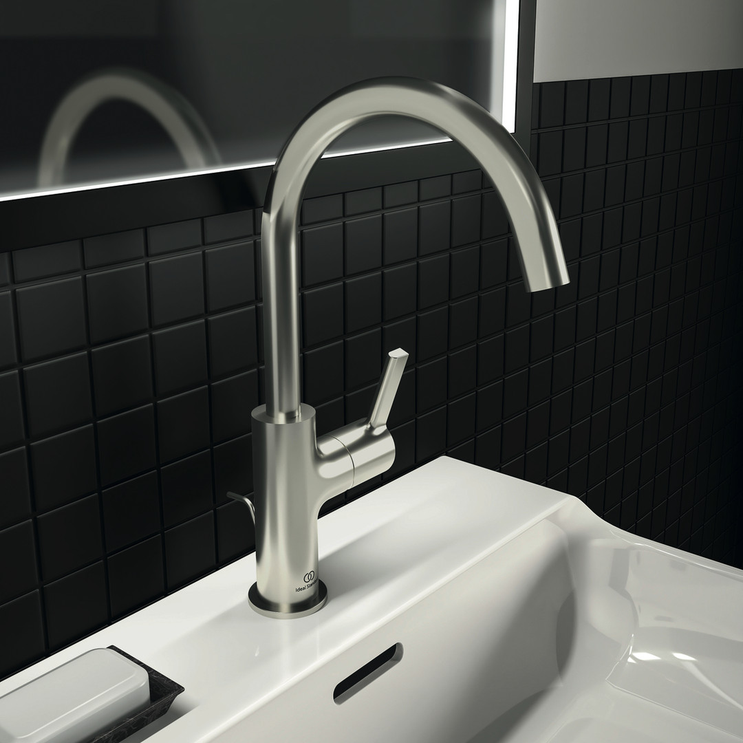 Ideal-Standard Waschtisch-Einhebelmischer Joy Ausladung 169mm, hoher Auslauf, schwenkbar, mit Metall-Ablaufgarnitur, silver storm
