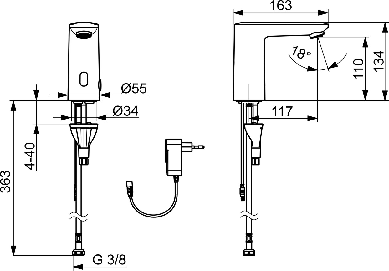 Infrarot-Waschtisch-Armatur HANSAELECTRA chrom, Netzbetrieb, Ausladung 117mm, 1 Zuleitung