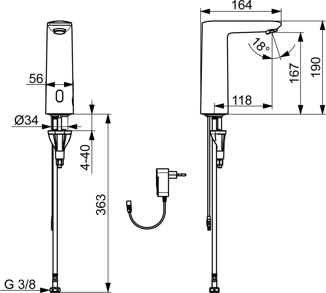 berührungslos, Steckernetzteil, bluetoothfähig, Standmontage (1-Loch), DN 15, Heißwasserversorgung max. 70°C, Arbeitsdruck 1-10 bar, Durchfluss bei 3 bar (mit Regler) 6 l/min, Anschlussgröße G3/8, Ausladung 118 mm, Arbeitsspannung 9 V, Sicherungseinrichtung (EN1717) AA, Geräuschklasse I (ISO 3822), Schutzklasse IP 55 / transformer IP 20, elektrischer Anschluß 230 / 9 V, Bluetooth version 5.x (D060576), Material Verbundwerkstoff, 3S-Installation System für sichere und schnelle Montage, Softwaresettings per App änderbar, ohne silikonhaltige Fette, Anschluss über fexible Druckschläuche, 1 Zuleitung, für Kalt- oder Mischwasser, konstante Durchfussleistung unabhängig vom Fließdruck, schwenkbar, weiterentwickelter PSD-Sensor mit Autofocus, mit Netzteil, Signalleuchten, Rückfussverhinderer, Schmutzflter, feststehender Auslauf
