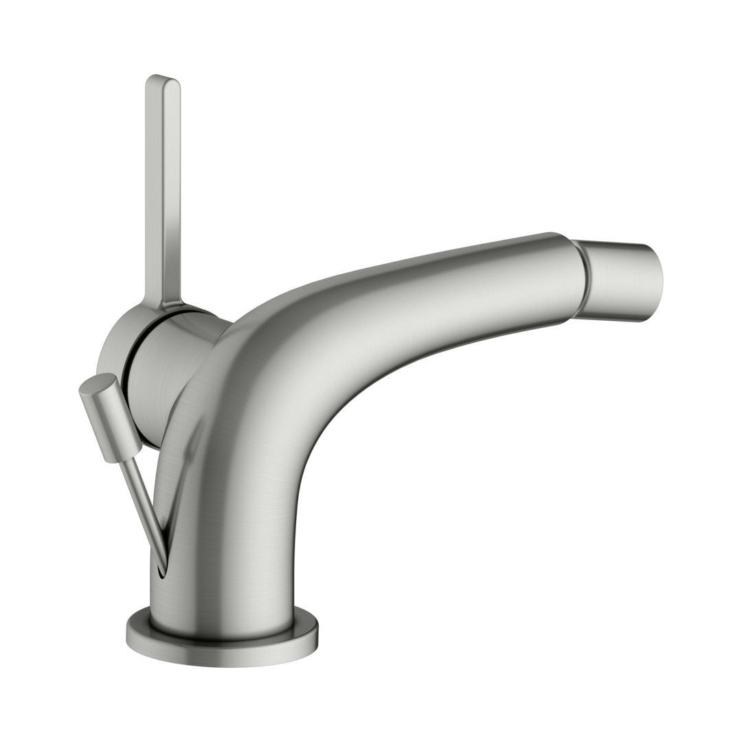 KEUCO Bidet-Einhebelmischer Edition 400 Ausladung 127mm, mit Ablaufgarnitur, Nickel gebürstet KE51509050000