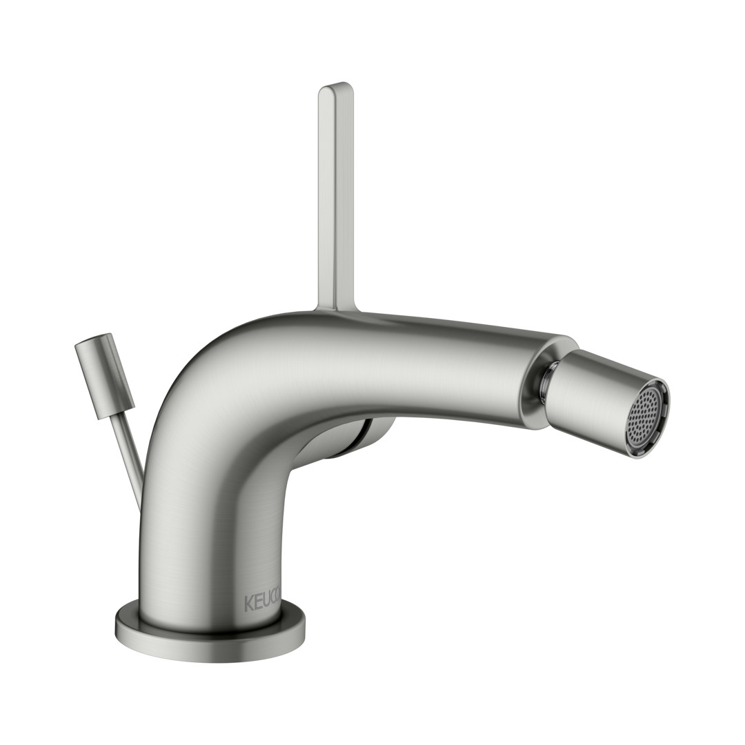 KEUCO Bidet-Einhebelmischer Edition 400 Ausladung 127mm, mit Ablaufgarnitur, edelstahl-finish KE51509060000