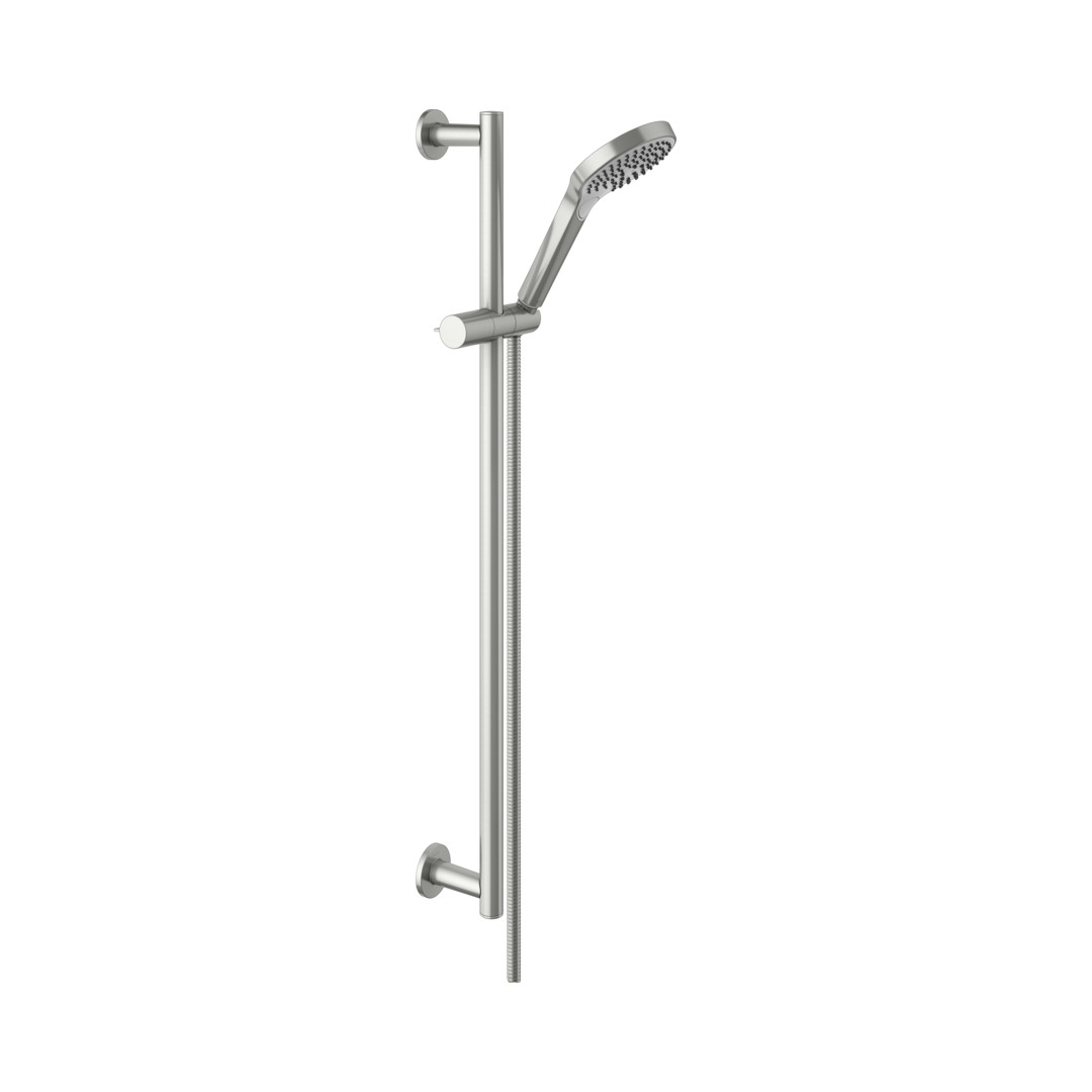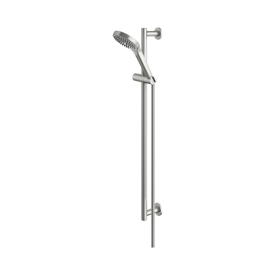 Brausestange (595 85 XX 09 01) Höhe 855 mm, Brauseschieber für Schläuche mit konischer Mutter, Brausehalter wahlweise links oder rechts, Neigungswinkel Brausehalter verstellbar, mit Fliesenausgleichsscheibe (5 mm), zum Schrauben oder Kleben (optional), mit Befestigungs-Set, Handbrause (595 80 XX 03 00) Anschlussgewinde G 1/2, 3 Strahlarten (Normal-, Soft- und Massagestrahl), mit Antikalk-System, Durchflussmenge begrenzt auf 12 l/min, für Durchlauferhitzer geeignet, Brauseschlauch (549 95 XX 16 00) Anschlussgewinde G 1/2, beidseitig konische Mutter, beidseitig verdrehgesichert, mit Knickschutz