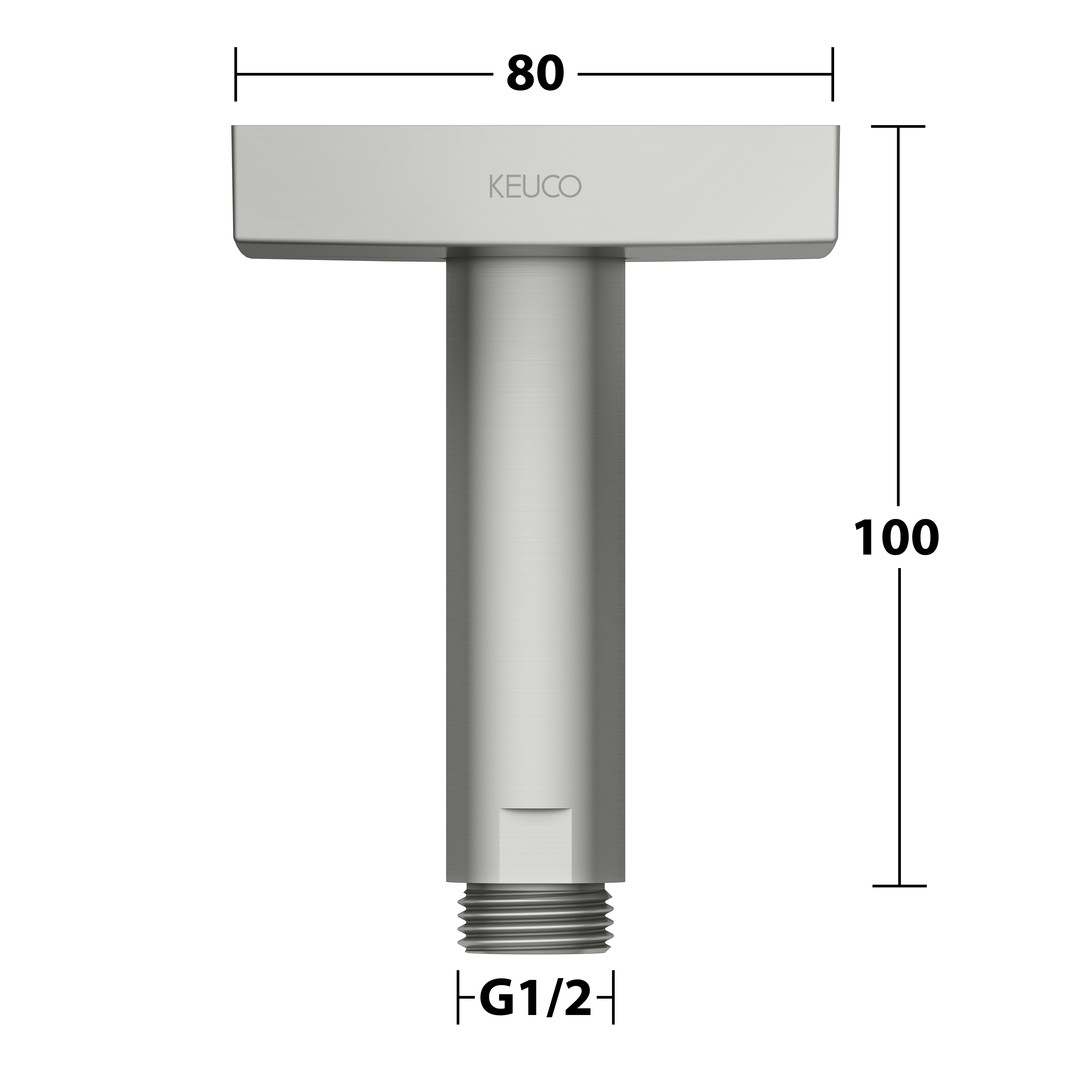 KEUCO Brausearm Ausladung 100 mm, nickel gebürstet, Rosette eckig, Deckenmontage KE53089050102