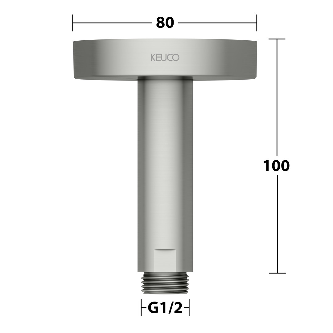 KEUCO Brausearm Ausladung 100 mm, edelstahl-finish, Rosette rund, Deckenmontage