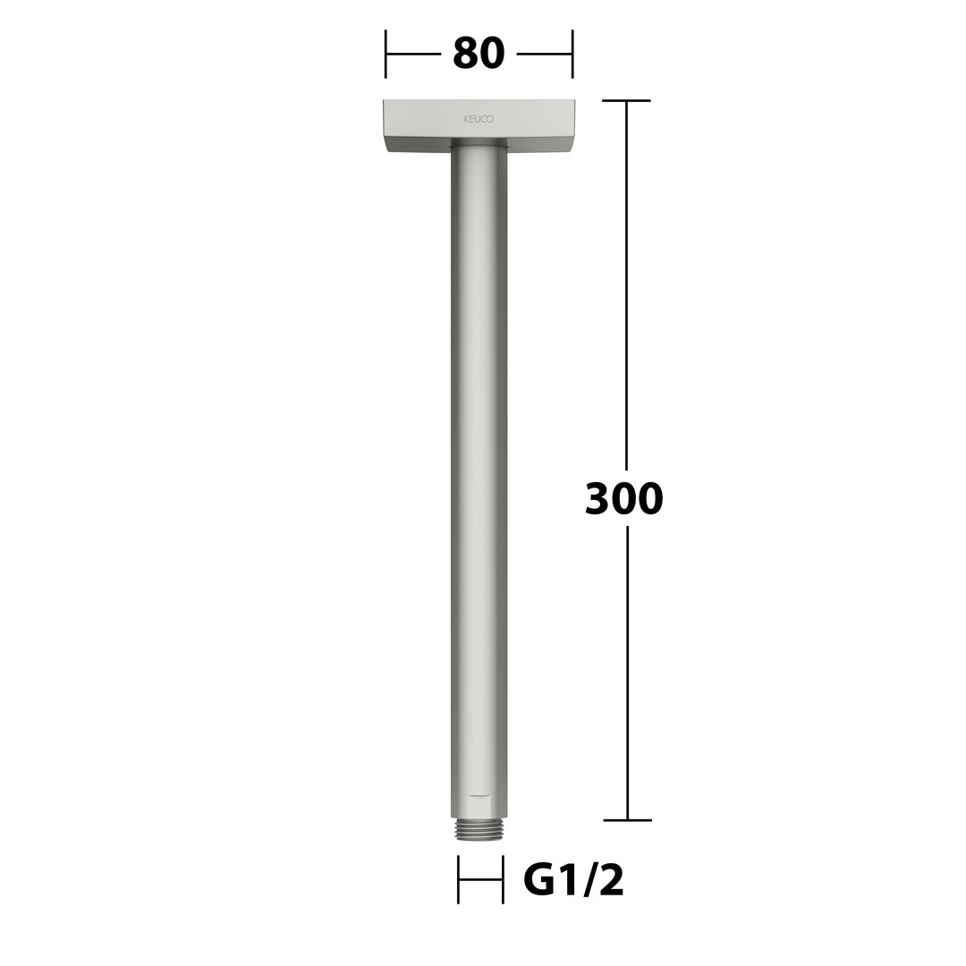 KEUCO Brausearm Ausladung 300 mm, edelstahl-finish, Rosette eckig, Deckenmontage