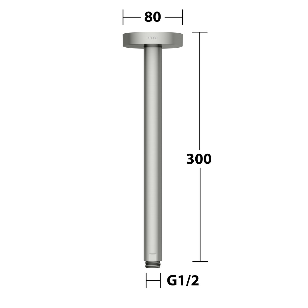 KEUCO Brausearm Ausladung 300 mm, edelstahl-finish, Rosette rund, Deckenmontage