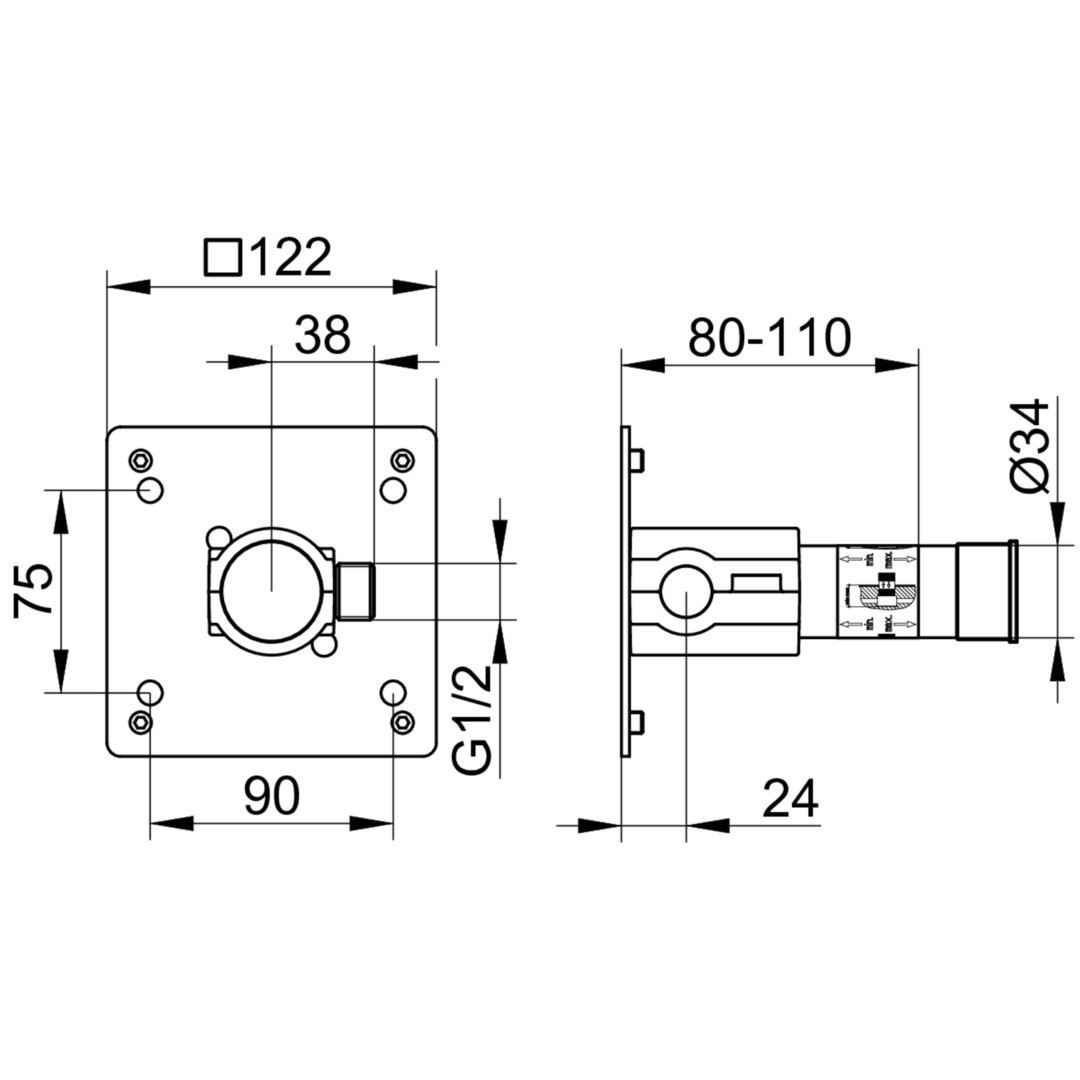 KEUCO Grundkörper Einbautiefe 80-110mm, für G 1/2 Anschlüsse, UP