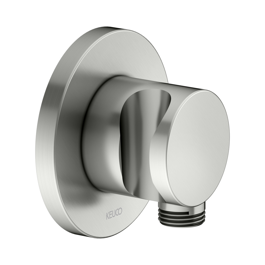 KEUCO Schlauchanschluss Rosette rund, mit Brausehalter, edelstahl-finish