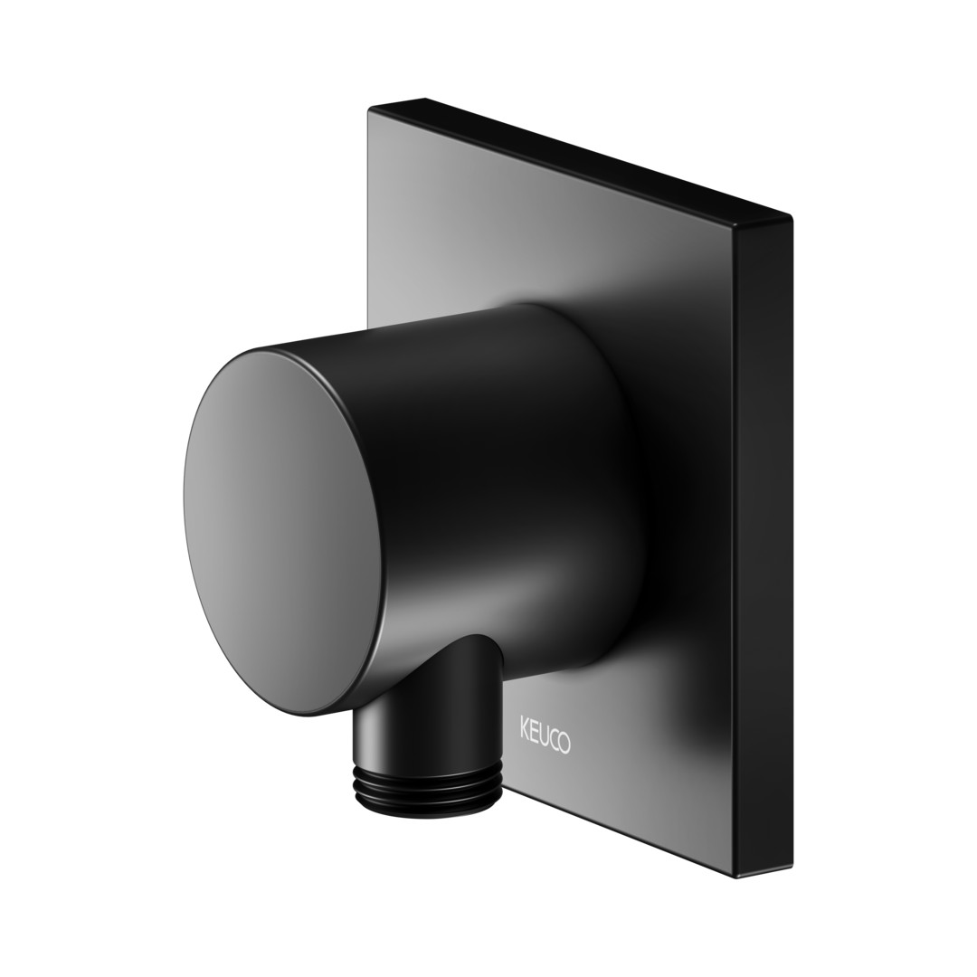 KEUCO Schlauchanschluss schwarz matt, Rosette eckig, mit Brausehalter