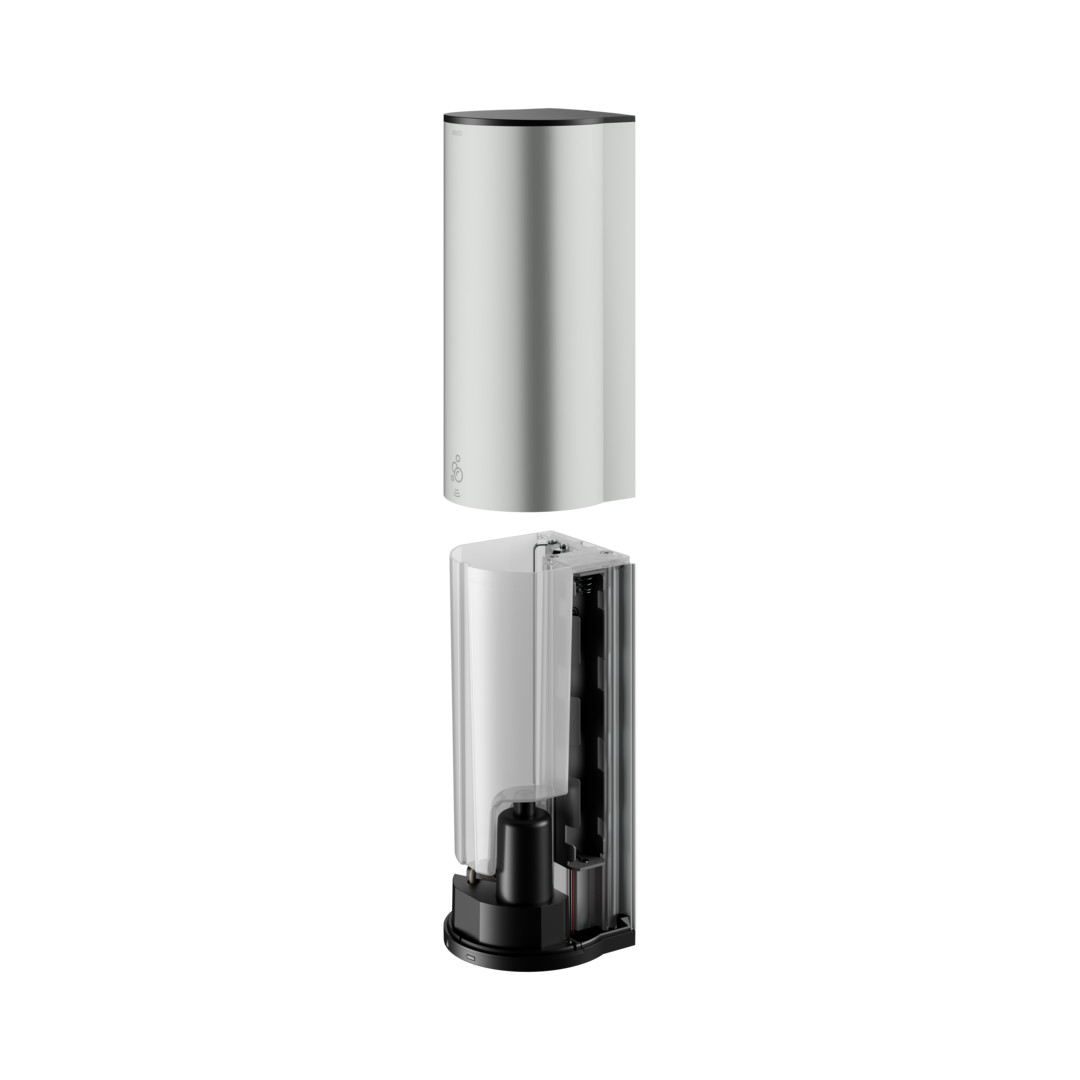 Füllmenge 1100 ml, Dosiermenge 1-3 ml/Hub (Werkseinstellung 2 ml/Hub), Betätigung von unten, Befüllung durch abnehmbares Gehäuse, LED Füllstandsanzeige, verdeckte Befestigung, zum Schrauben, mit Befestigungs-Set, Infrarot-Sensorik (Reichweite einstellbar, Dosiermenge einstellbar), manueller Stop zur Reinigung, Batterie- oder Netzbetrieb, Spannung 6 V, Batteriebetrieb 4 Batterien 1,5 V Baby C erforderlich, Netzbetrieb Konverter 199 56 00 00 02 erforderlich, die Seifenspender sind verwendbar mit handelsüblichen Flüssigseifen