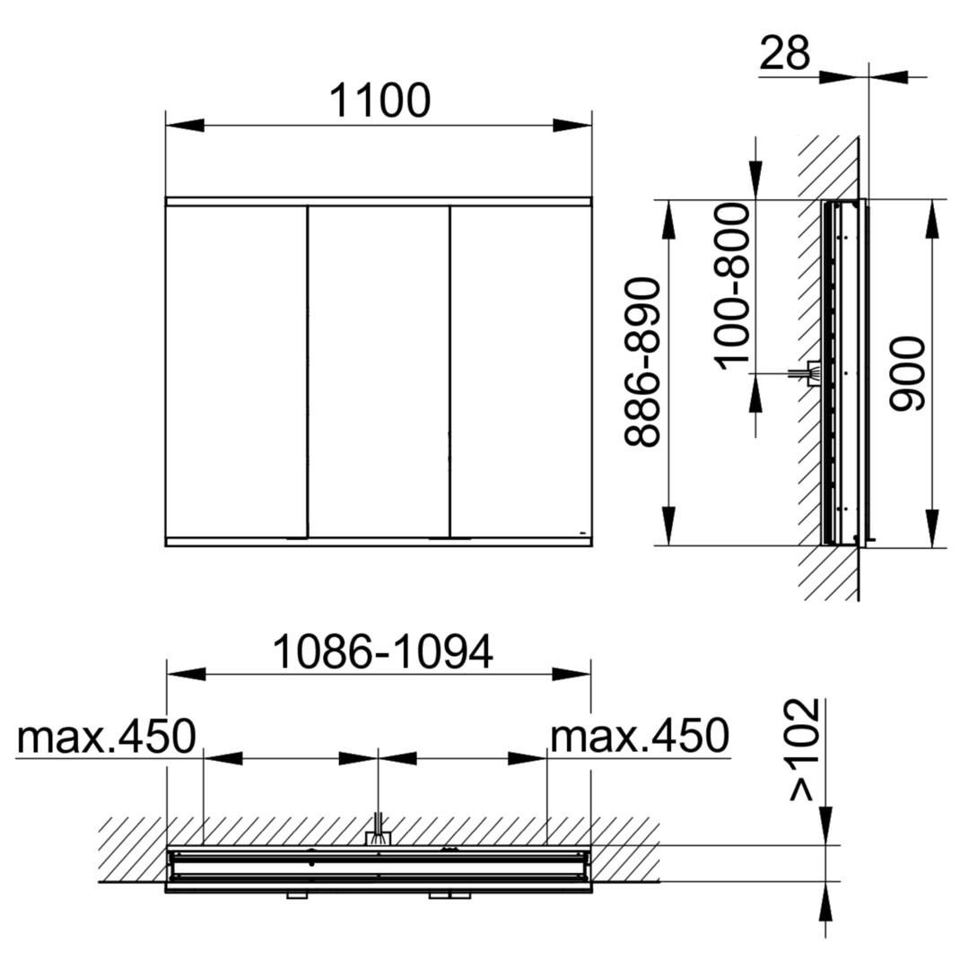 KEUCO Spiegelschrank Royal Modular 2.0 100 x 90 x 12 cm, ohne Steckdose, UP, 3-türig 800300101000000