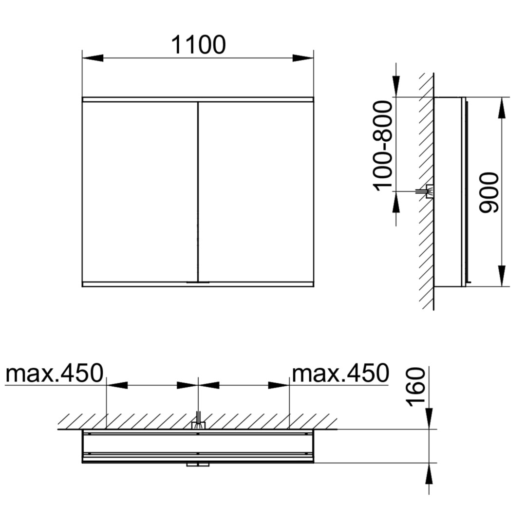 KEUCO Spiegelschrank Royal Modular 2.0 110 x 90 x 16 cm, 2 Steckdosen, AP, 2-türig