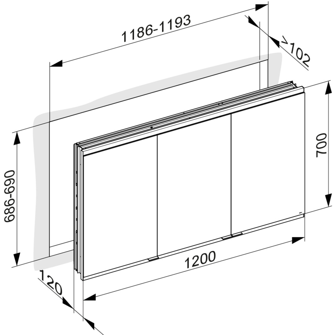 KEUCO Spiegelschrank Royal Modular 2.0 120 x 90 x 12 cm, 1 Steckdose, 1 Doppel-USB-Ladestelle, UP, 3-türig